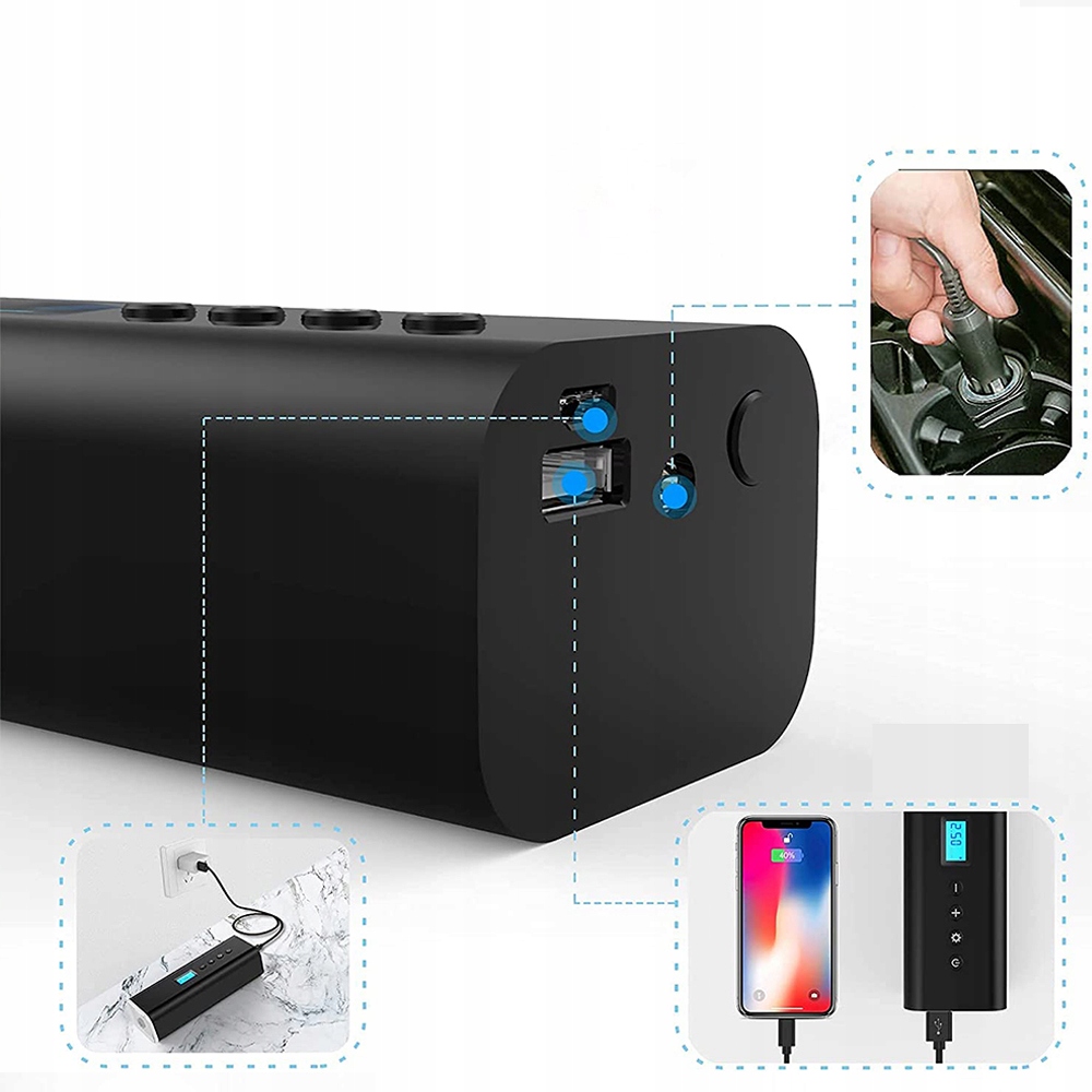 ★4* Большая емкость 2000 мАч. Этот портативный воздушный компрессорный насос оснащен встроенным сертифицированным литий-ионным аккумулятором емкостью 2000 мАч и USB-портом для зарядки, поддерживающим быструю зарядку.