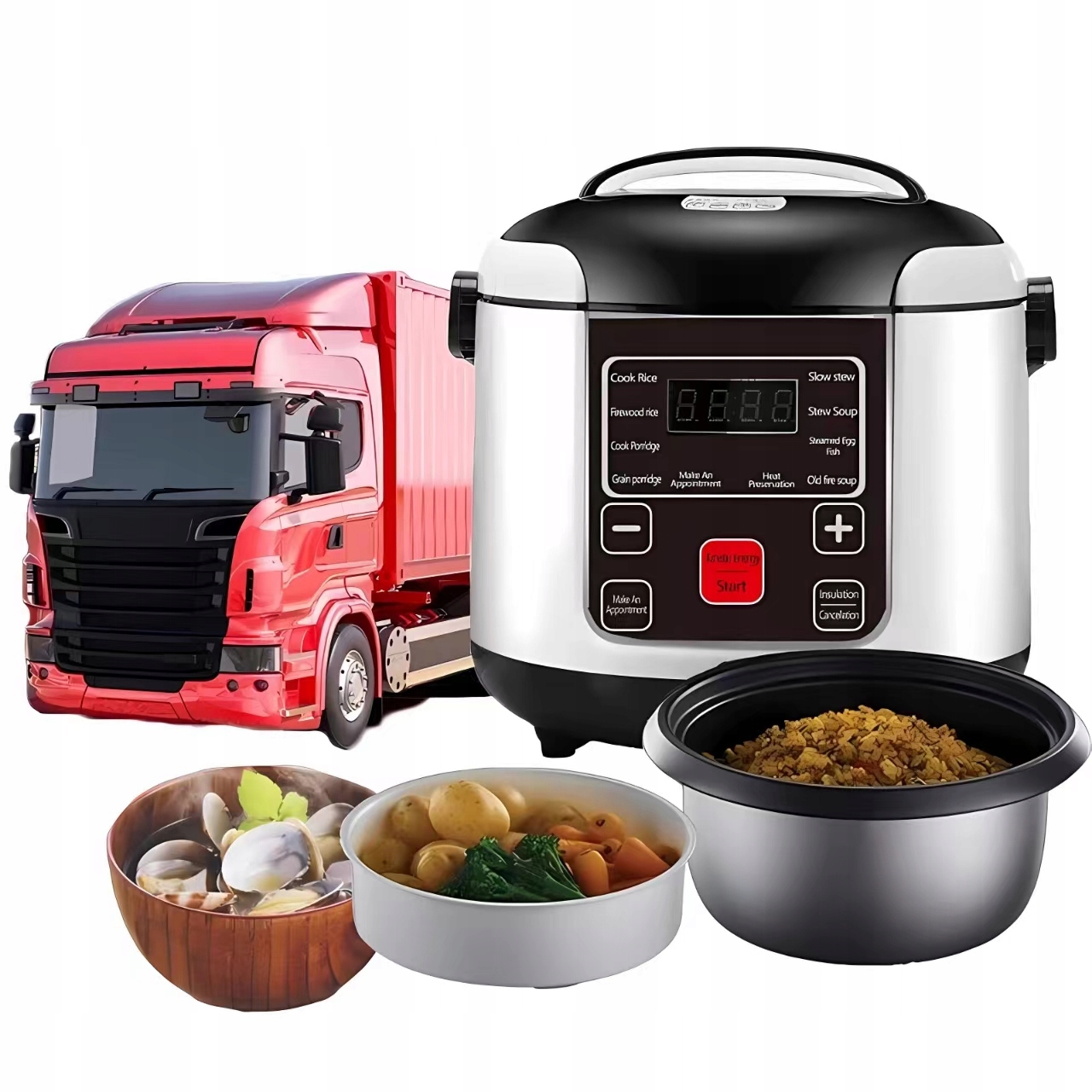 Multicoker Car 2L Туристический рис -тир автобус LCD таймер
