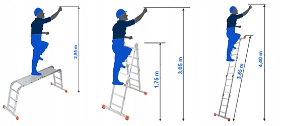 С января 2018 года, в соответствии с нормативными требованиями, сформулированными универсальными лестницами дольше 3 м и могут служить подкрепленными лестницами, они должны иметь не только соответствующие стабилизаторы , но и обозначение о возможности профессионального использования и пользовательских руководств и использования . Теперь, из -за последующих изменений, сочлененные лестницы на уровне 4x3, который может использоваться в качестве рабочей платформы, должны поставляться производителем вместе с соответствующей платформой , позволяющей этот тип настройки.