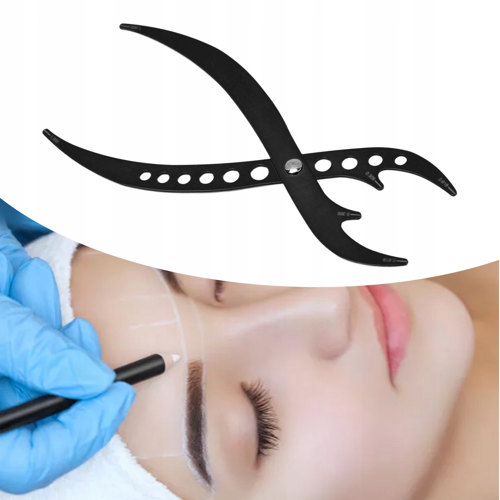 Применение: Положение бровей при рисовании бровей, создавая симметричные бровей из стороны в сторону