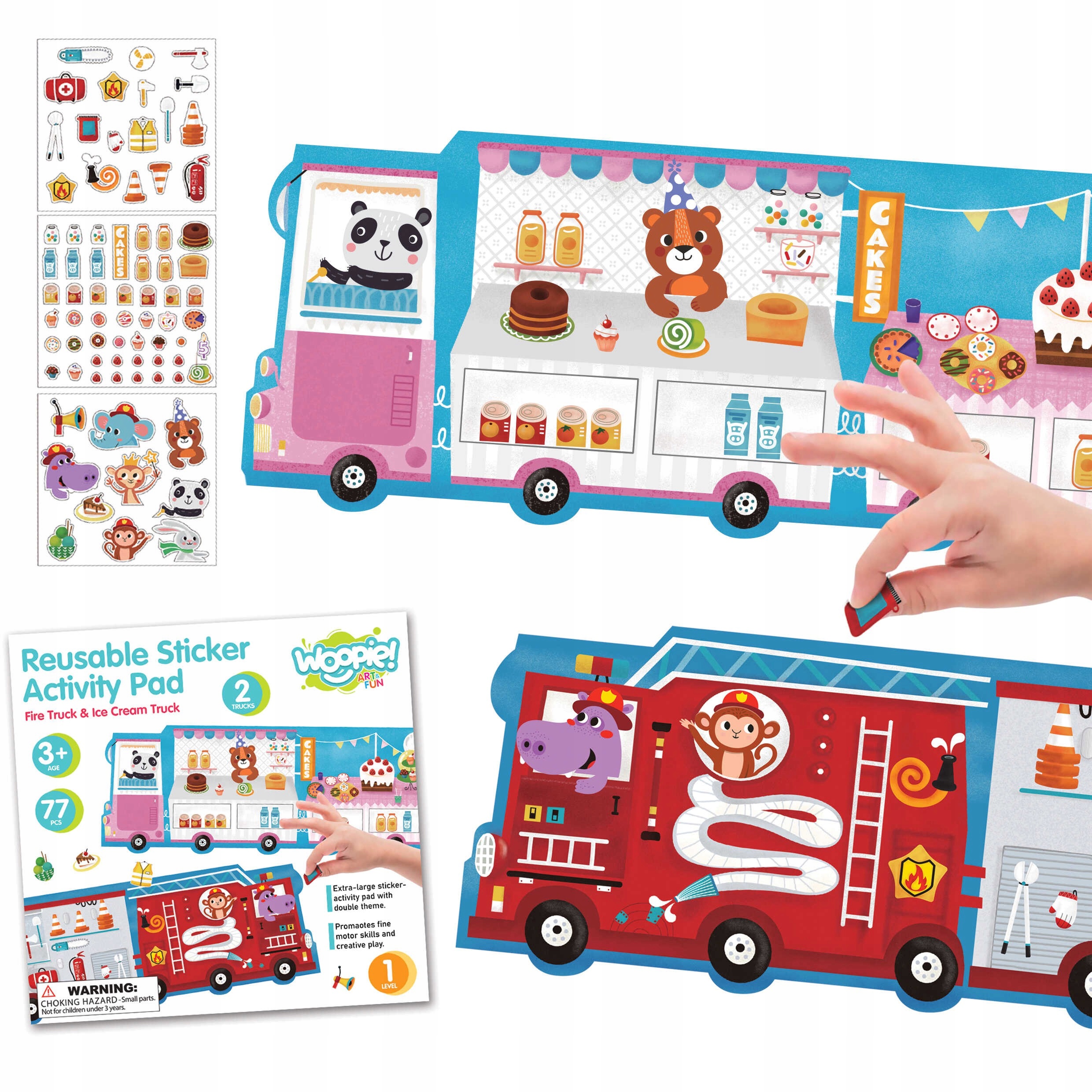 WOOPIE ART&FUN Многоразовые наклейки. Набор креативных наклеек. Транспорт. Пожарная служба. Магазин мороженого. 77 шт.