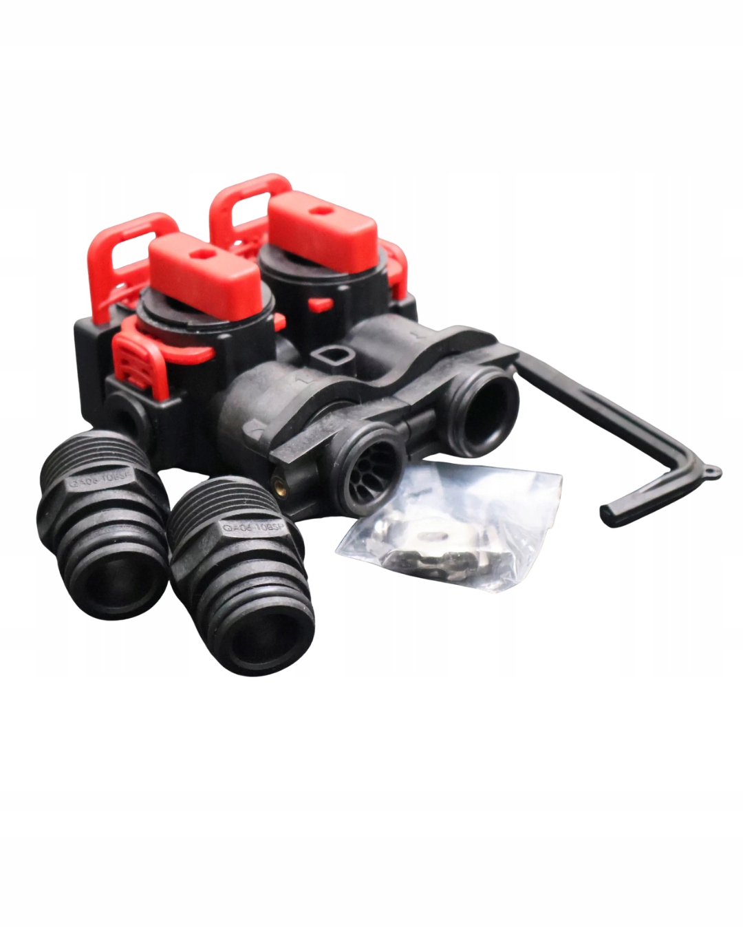 Байпасный клапан для установки умягчителя воды в контроллере BNT. Обеспечивает быструю и безопасную установку. Благодаря этому клапану мы можем перекрыть приток и отток воды из умягчителя. Рекомендуется для людей, которые устанавливают устройство самостоятельно. Универсальное расстояние подключения. В комплект входят прокладки, силиконовая смазка и набор винтов.