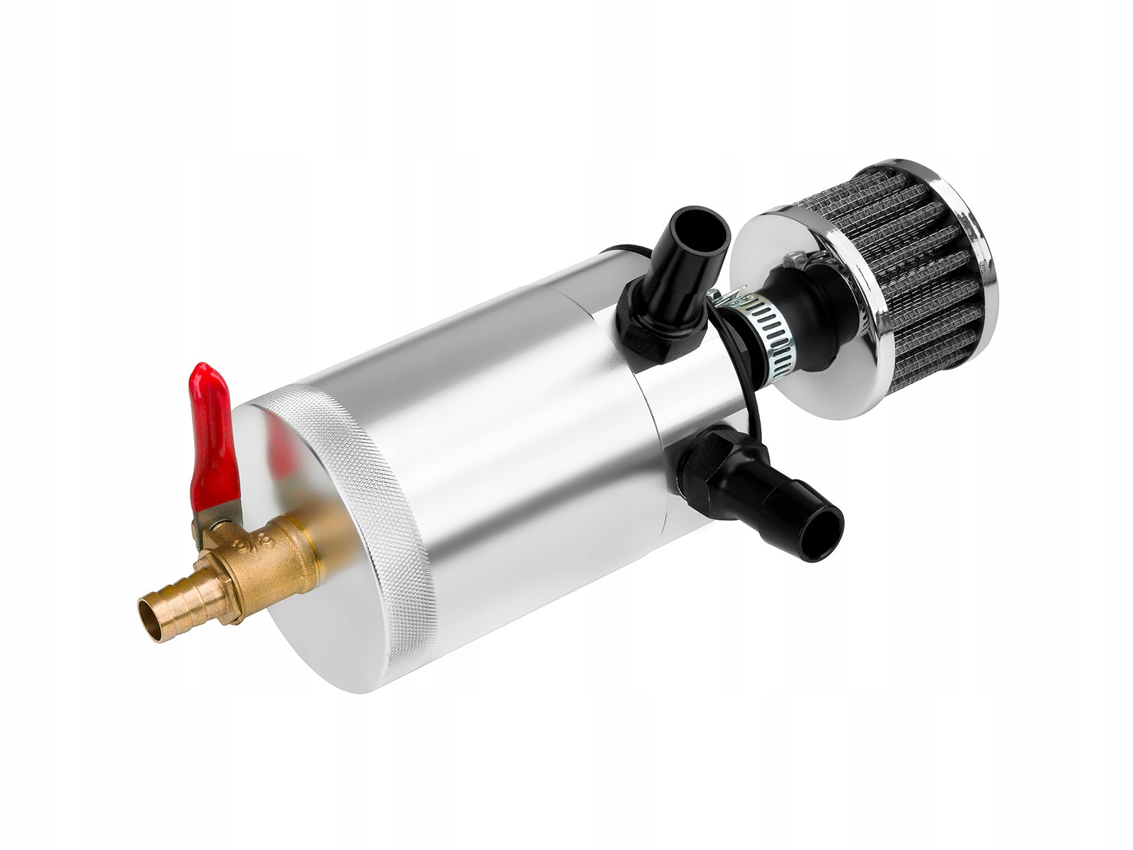 Универсальный маслоуловитель при пневмотораксе предназначен для поддержания в чистоте системы впуска и дроссельной заслонки. Загрязненное масло отделяется и остается в баке, а очищенный воздух возвращается во впускную систему. Маслоуловители изготавливаются из алюминия или его сплавов, которые обладают высокой способностью выделять тепло, что помогает отделять загрязняющие вещества из воздуха. В нижней части маслоуловителя имеется пробка, позволяющая опорожнить бак. Дополнительно в комплект входит шаровой кран.
