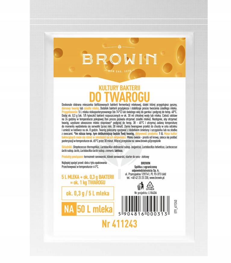 Оплачивая «Бактеріальні культури для сиру Biowin Browin» данный товар из каталога «Бактериальные культуры» вы можете быть уверены, что после оформления заказа, доставки в Украину, вы получите именно то, что заказывали, в оговоренные сроки и европейского качества.