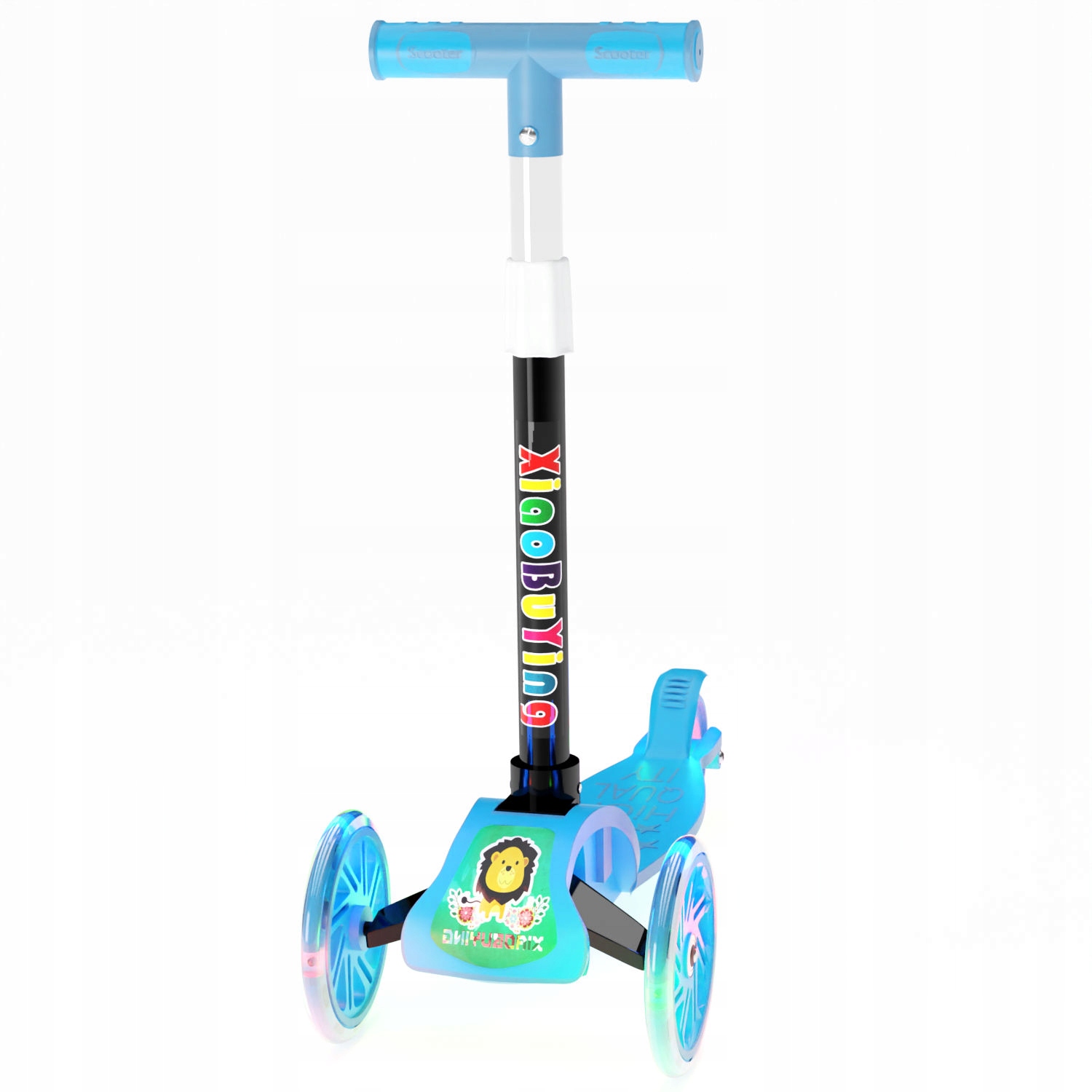 Устройство оснащено специальным поворотным механизмом — для поворота необходимо правильно сбалансировать тело. Благодаря использованию трех колес самокат более устойчив и безопасен для ребенка. Он стоит самостоятельно — опорные ножки не требуются.