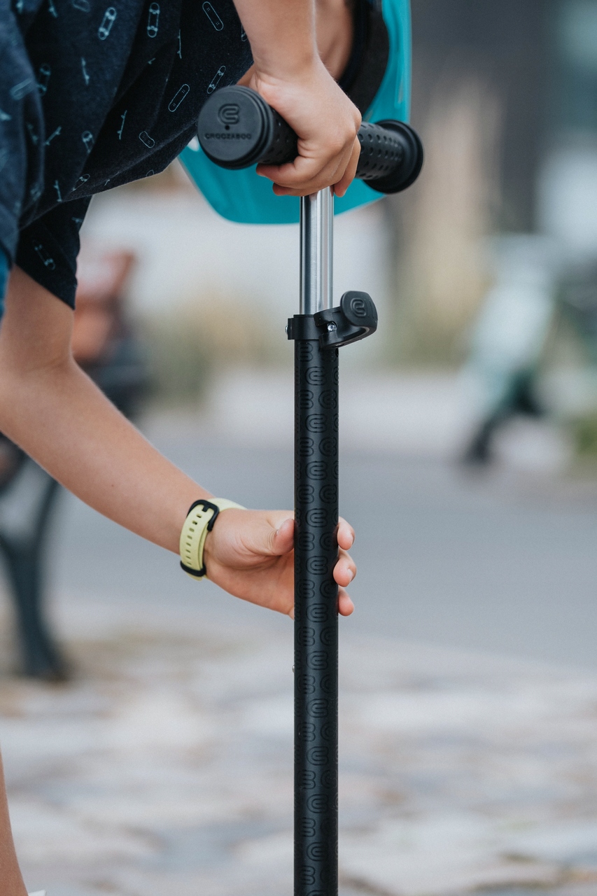 Модель, предлагаемая Croozaboo, растет вместе с ребенком благодаря регулируемой по высоте рулю. Благодаря механизму самокат можно отрегулировать под рост ребенка. Рулевое колесо имеет Т-образную форму и может регулироваться в трех диапазонах: 71, 80 и 89 см. Руль выполнен из алюминия и имеет черные мягкие чехлы. Благодаря регулировке по высоте вам не придется слишком быстро расставаться с любимым оборудованием, а поскольку оно прочный, его можно передать младшему ребенку в пользование братьям и сестрам.
