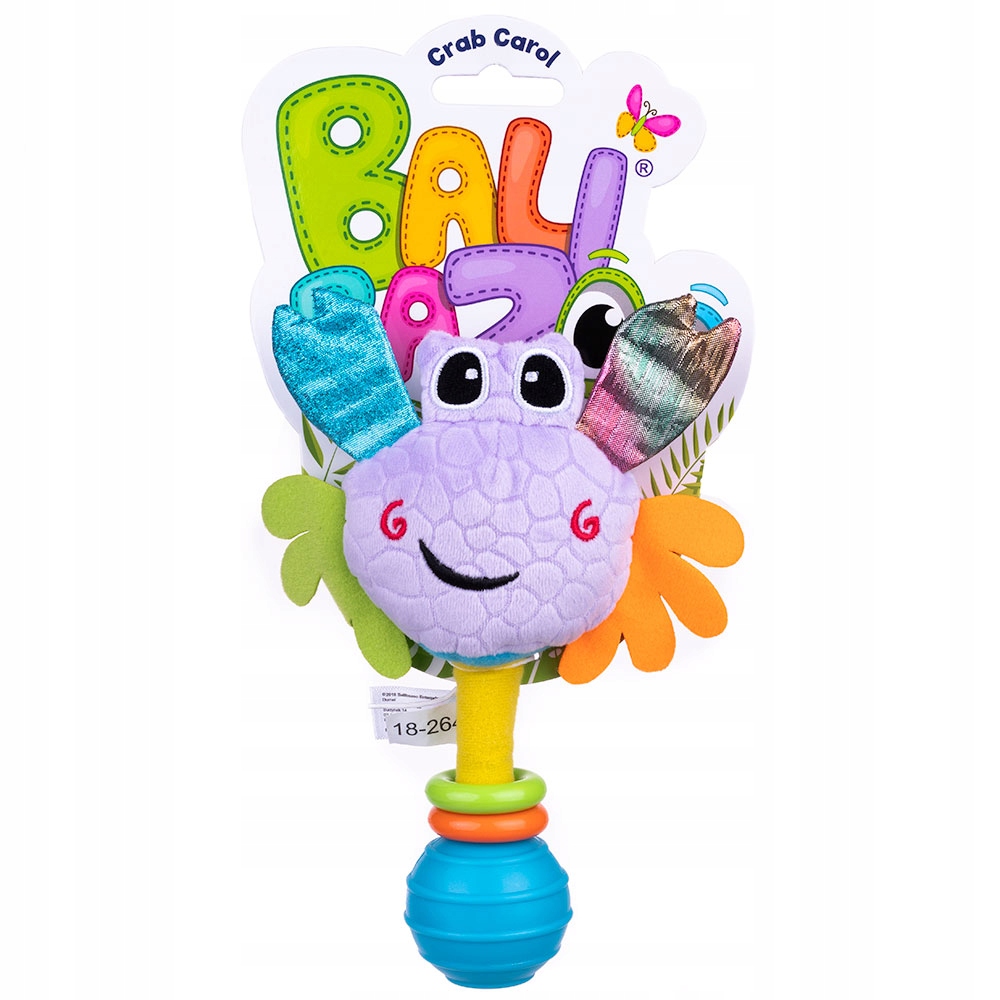 КРАБ-ПОГРЕМКА КЭРОЛ BALIBAZOO С Кэрол ваш малыш переживет красочные приключения и разовьет свои познавательные способности! У этого красивого краба ножки и клешни изготовлены из материалов различной текстуры, которую ваш малыш сможет обнаружить на ощупь. Когда малыш трясет текстурированный мяч, на котором сидит Кэрол, краб с радостью раскачивается во все стороны, забавно при этом дребезжа. Игрушка предназначена для детей с рождения.