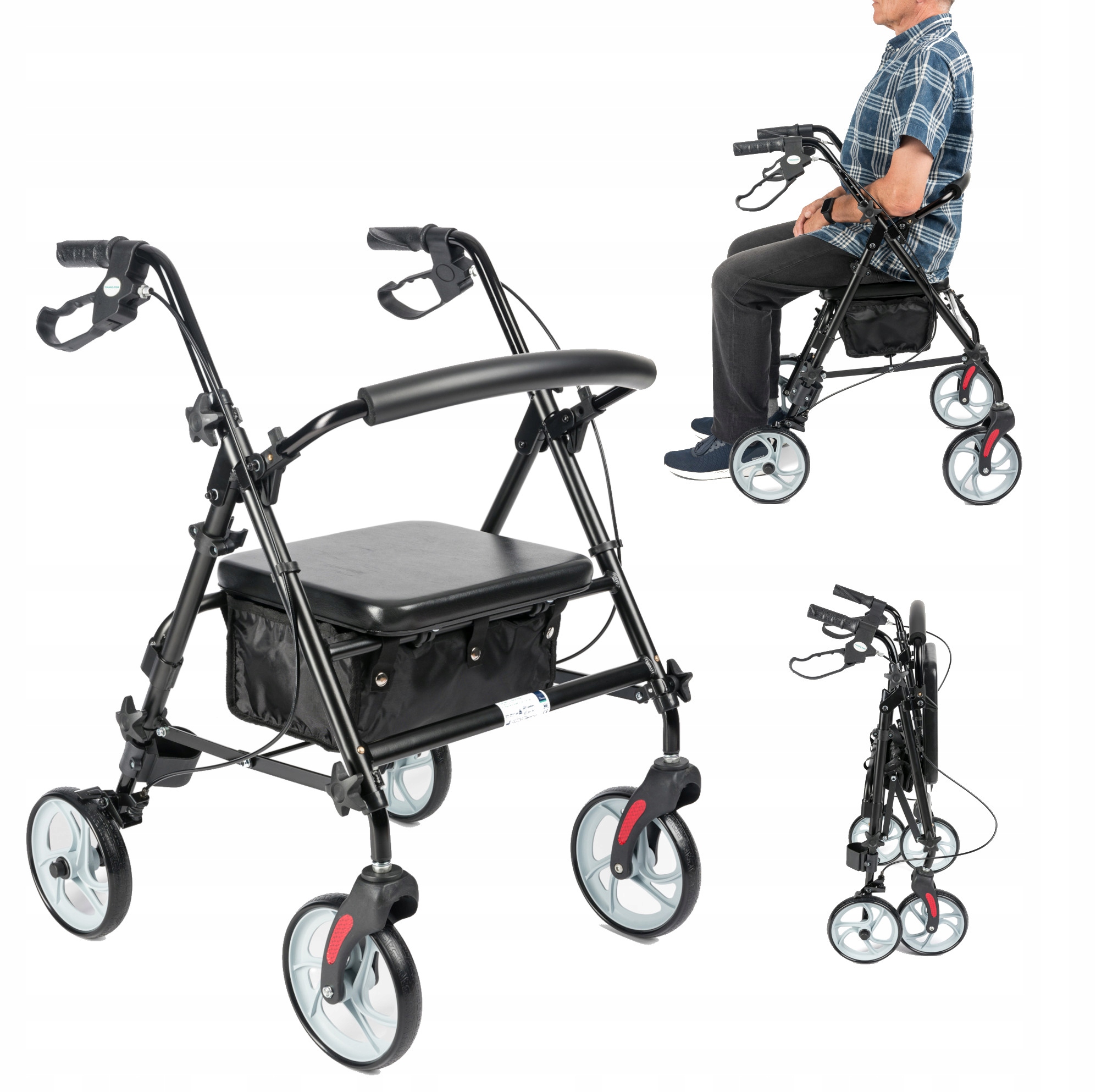 Четырехколесная подставка Carbon от бренда Timago складная, изготовлена из алюминиевой рамы, покрытой краской типа «металлик». Имеет широкое мягкое сиденье, мягкую спинку и корзину для перевозки вещей. Кроме того, опора оснащена тормозами, светоотражателями и регулируемыми по высоте ручками с противоскользящими накладками. Максимальная нагрузка — 100 кг.