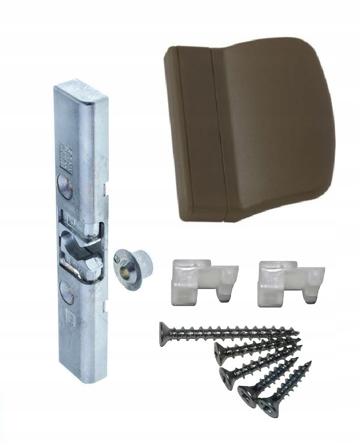 Если вы хотите приобрести защелку с ручкой из алюминия, окрашенного в цвет, очень похожий на шпон ваших окон, такие комплекты также есть в нашем предложении на Аллегро.