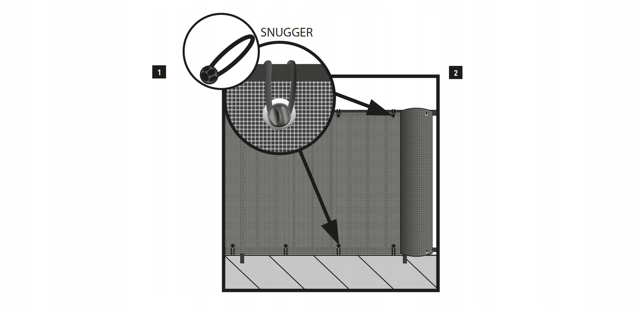 Плотное расположение монтажных петель обеспечивает прочную фиксацию и натяжение ткани чехла: