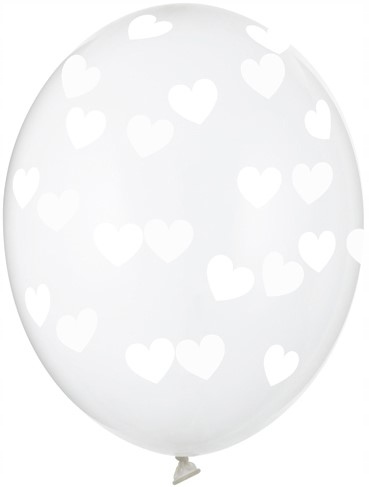 BALONY PRZEZROCZYSTE TRANSPARENTNE W BIAŁE SERDUSZKA NA ŚLUB WESELE 6 SZT