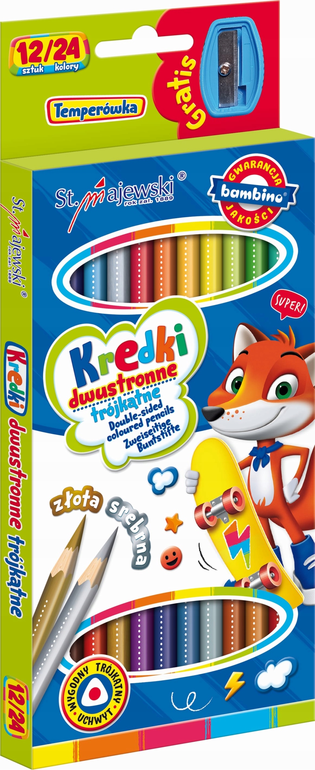 Мелки BAMBINO ТРЕУГОЛЬНЫЕ, ДВУХСТОРОННИЕ, 12 ШТ/24 ЦВЕТА + ТОЧИЛКА