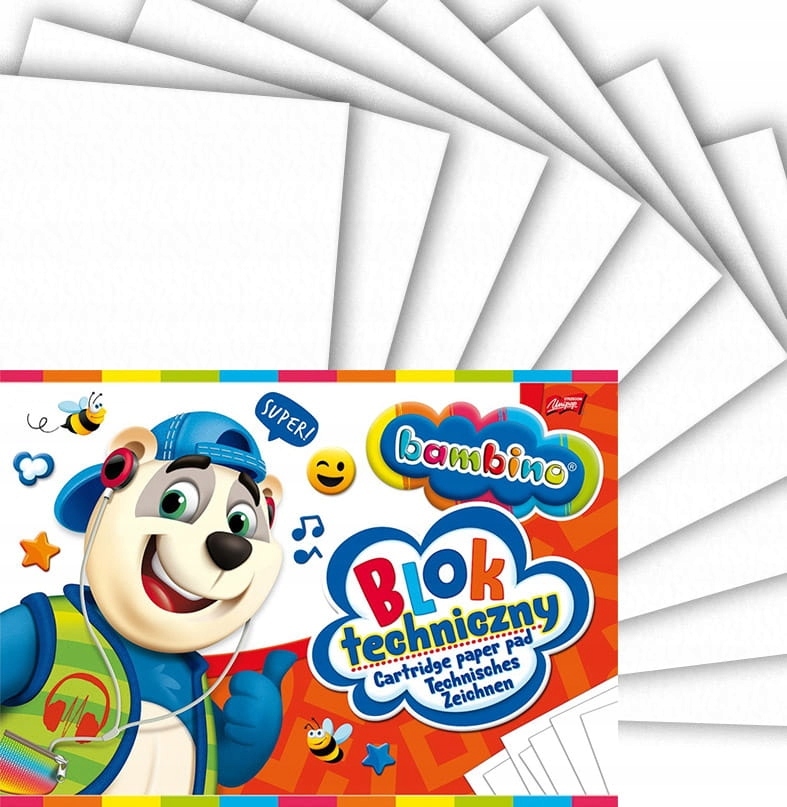⭐BAMBINO TECHNICAL BLOCK БЕЛЫЙ А4 190г/м2 10 ШКОЛЬНЫХ ЛИСТОВ⭐