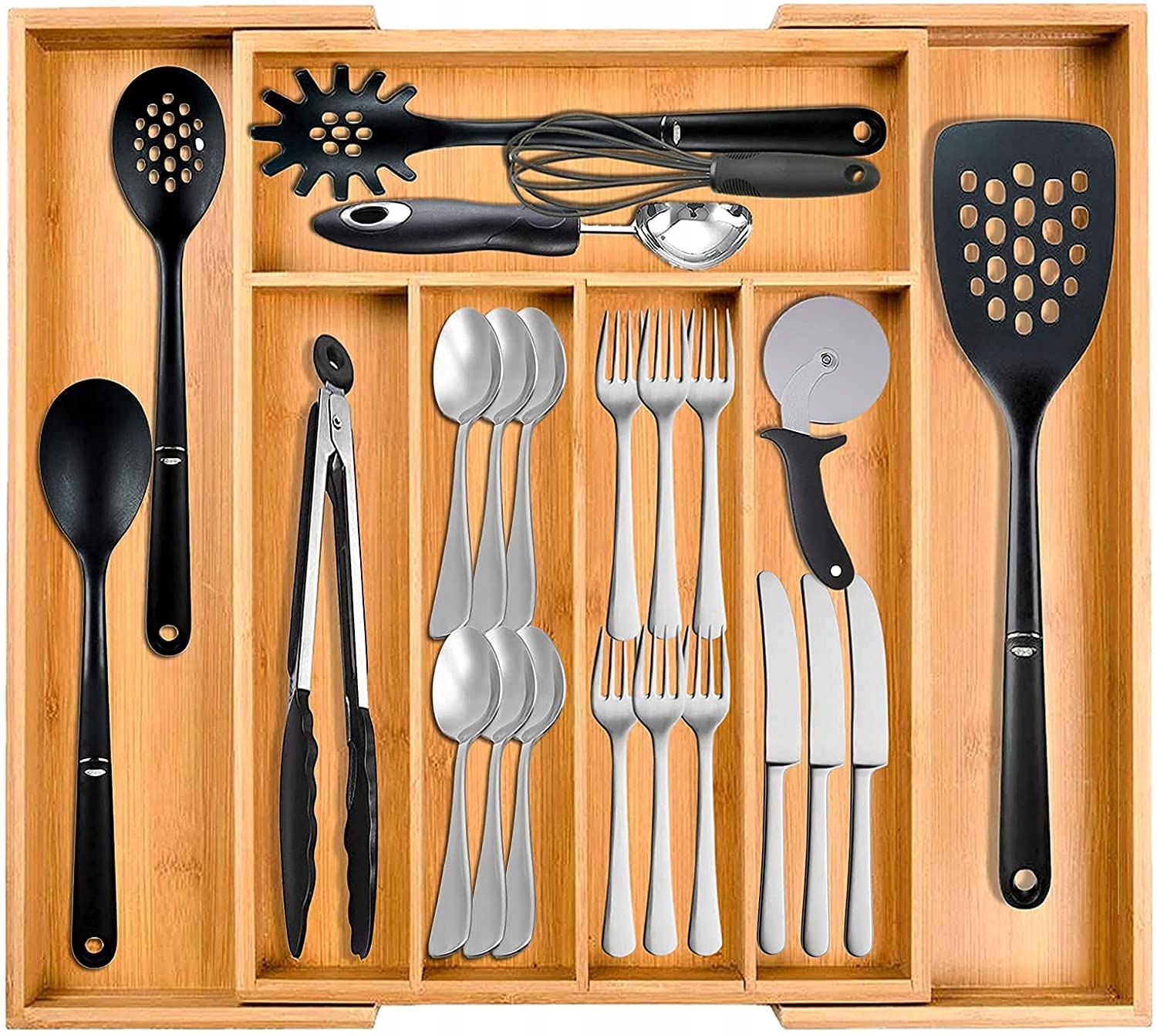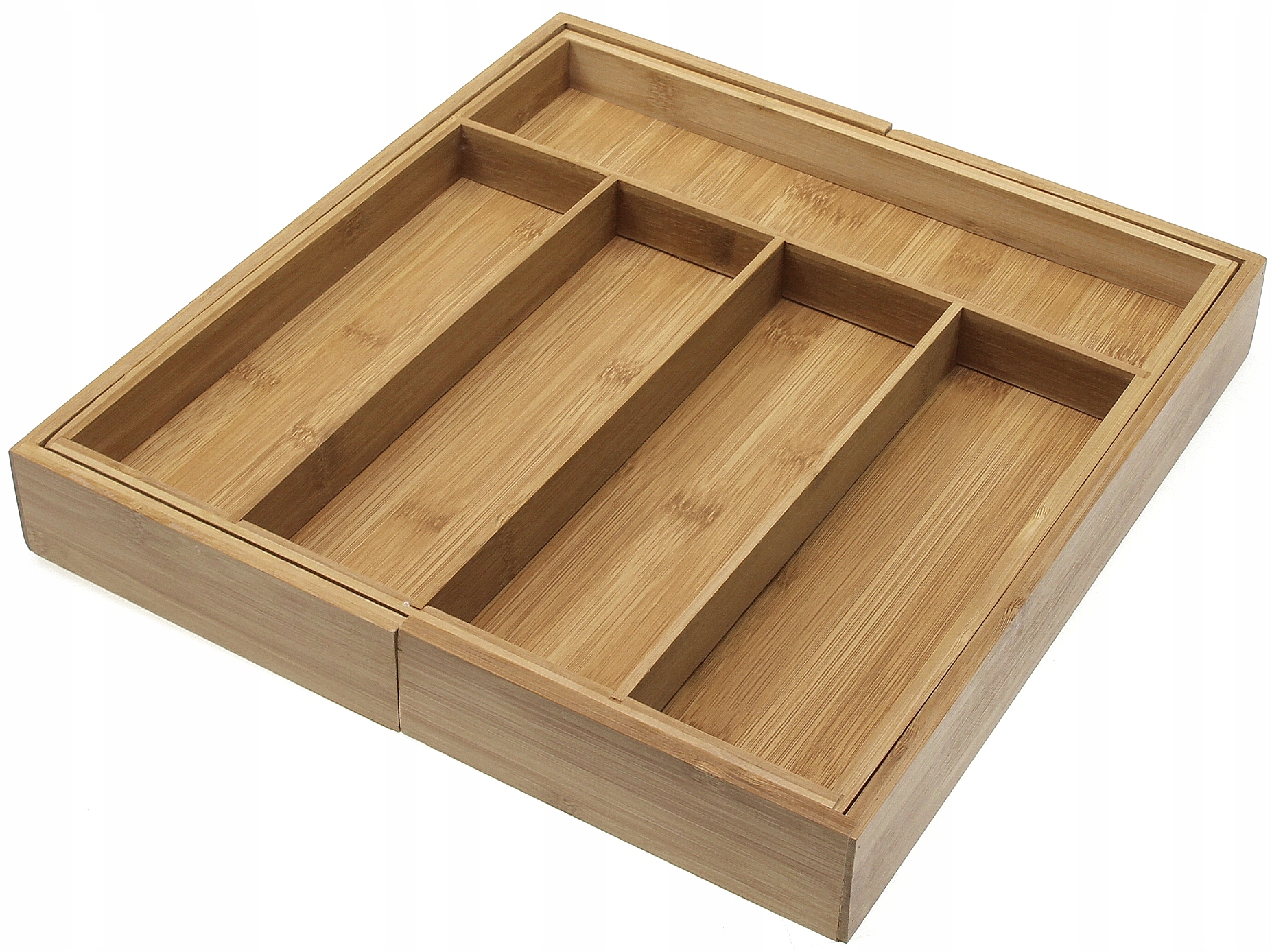 Изготовлены из древесины бамбука, устойчивой к влаге и деформации. , имеет восемь отделений разной длины и регулируемую ширину.