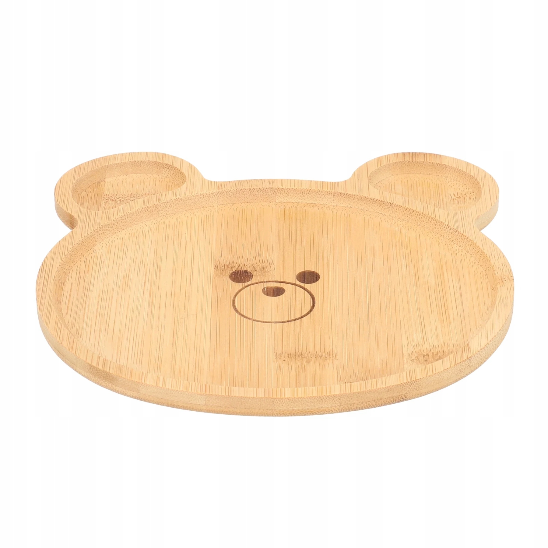 Деревянная тарелка BAMBOU имеет форму плюшевого мишки, морда и нос которого изящно отмечены на нижней части тарелки. Уши — это отдельные отсеки пластины. Сосуд следует мыть только вручную.