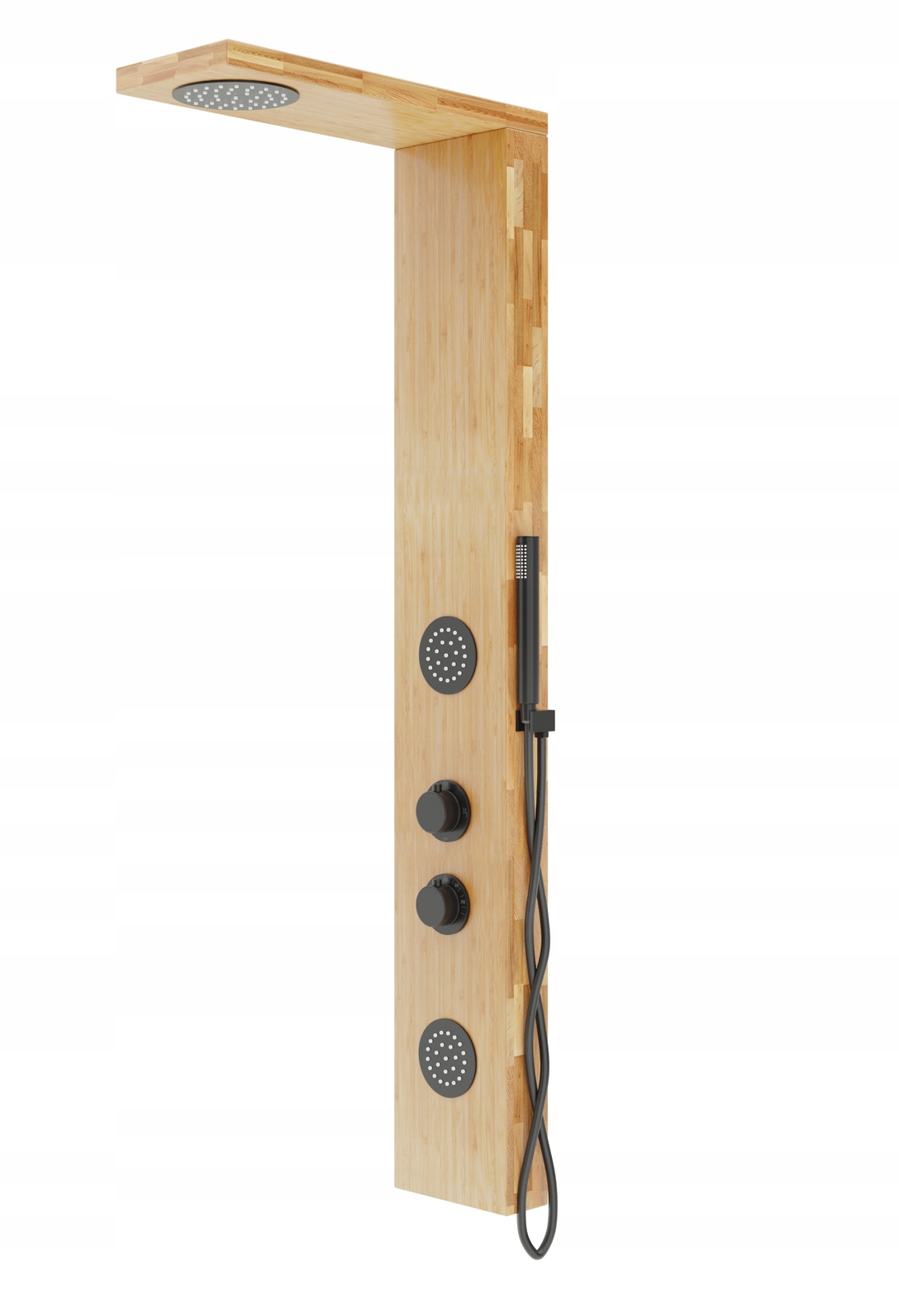 Бамбуковая душевая панель Corsan с гидромассажем и черным термостатом