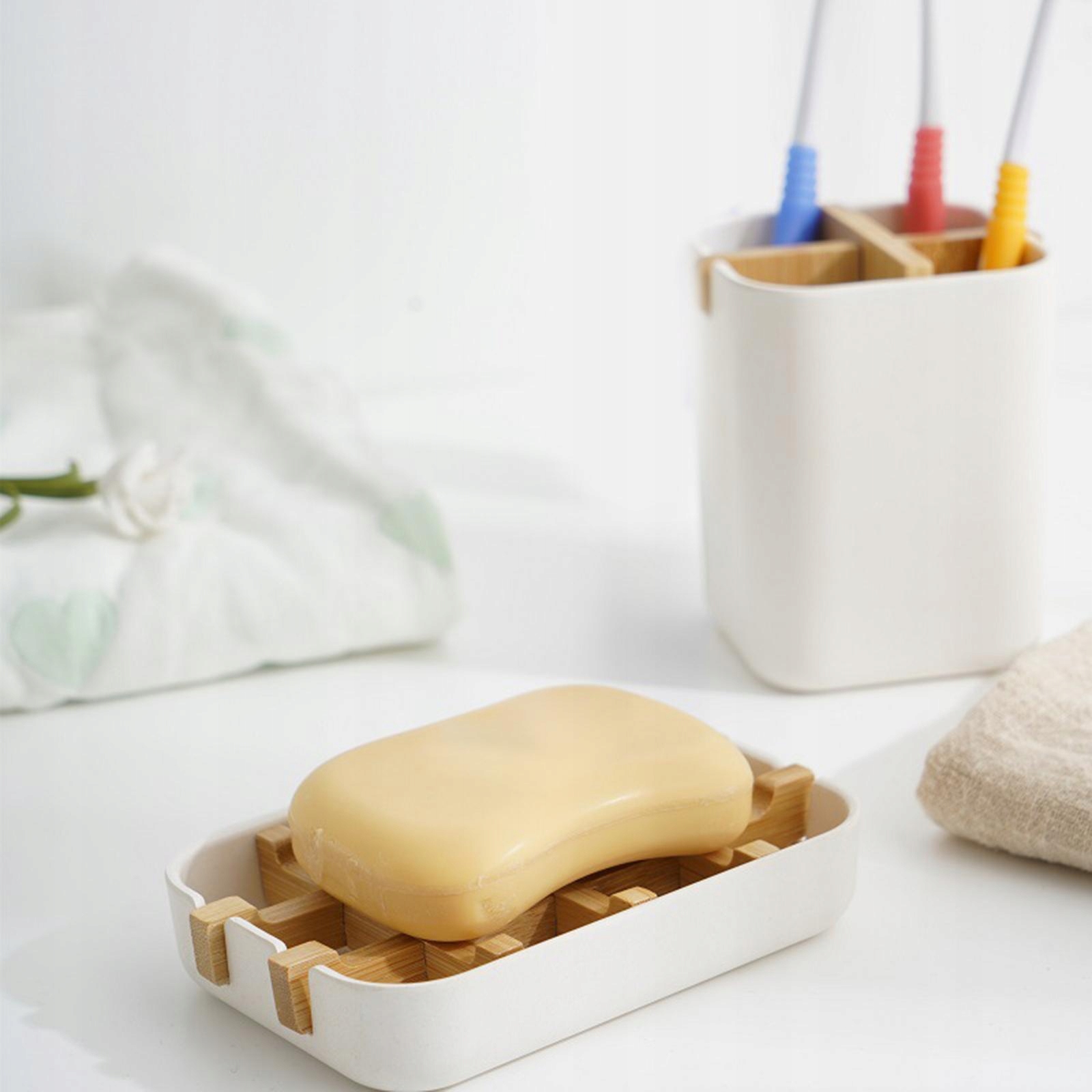 Бамбуковая мыльница с поддоном для капель, держателем для мыла, легким чистым и сухим мылом, белым