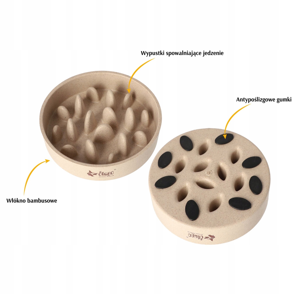 Они предназначены для собак, которые едят слишком быстро и жадно. У них есть специальные выступы, которые не позволяют собаке слишком быстро поедать корм. В результате мы продлеваем время приема пищи собакой за счет уменьшения количества проглатываемой пищи. Животное, которое ест слишком быстро, не откусывает пищу и не заглатывает ее жадно. Он поглощает много воздуха, что часто приводит к проблемам с желудком. Поедание замедляющих порций помогает нам решить эту проблему. Благодаря несколько усложненному процессу извлечения пищи из уголков и щелей миски собака успокаивается и высвобождает запасы энергии.