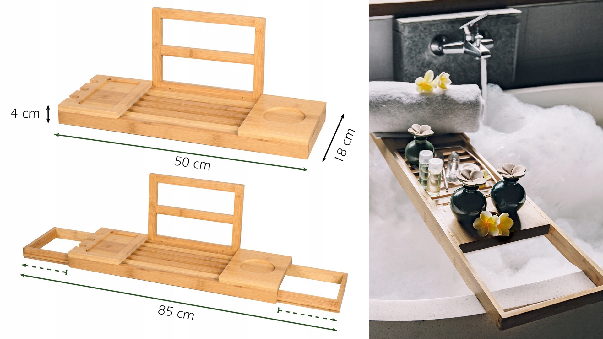 БАМБУКОВА ПОЛИЦЯ ДЛЯ ВАННОЇ РЕГУЛЮВАННЯ 50 - 85 см