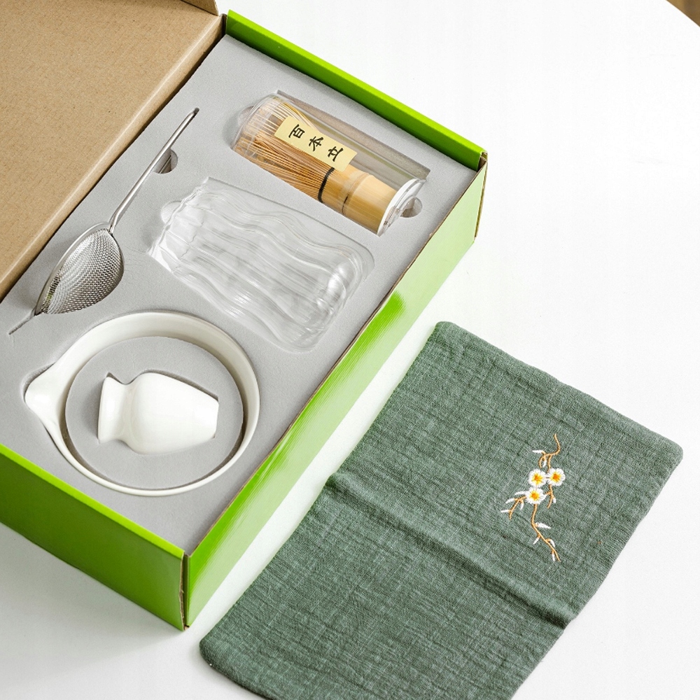 - - Бамбуковый венчик, изготовленный из высококачественного бамбука, керамики и стекла, обеспечивает гладкость и нежность матча, а керамическая чаша и стеклянная кружка добавляют элегантности вашему чайному сервизу.