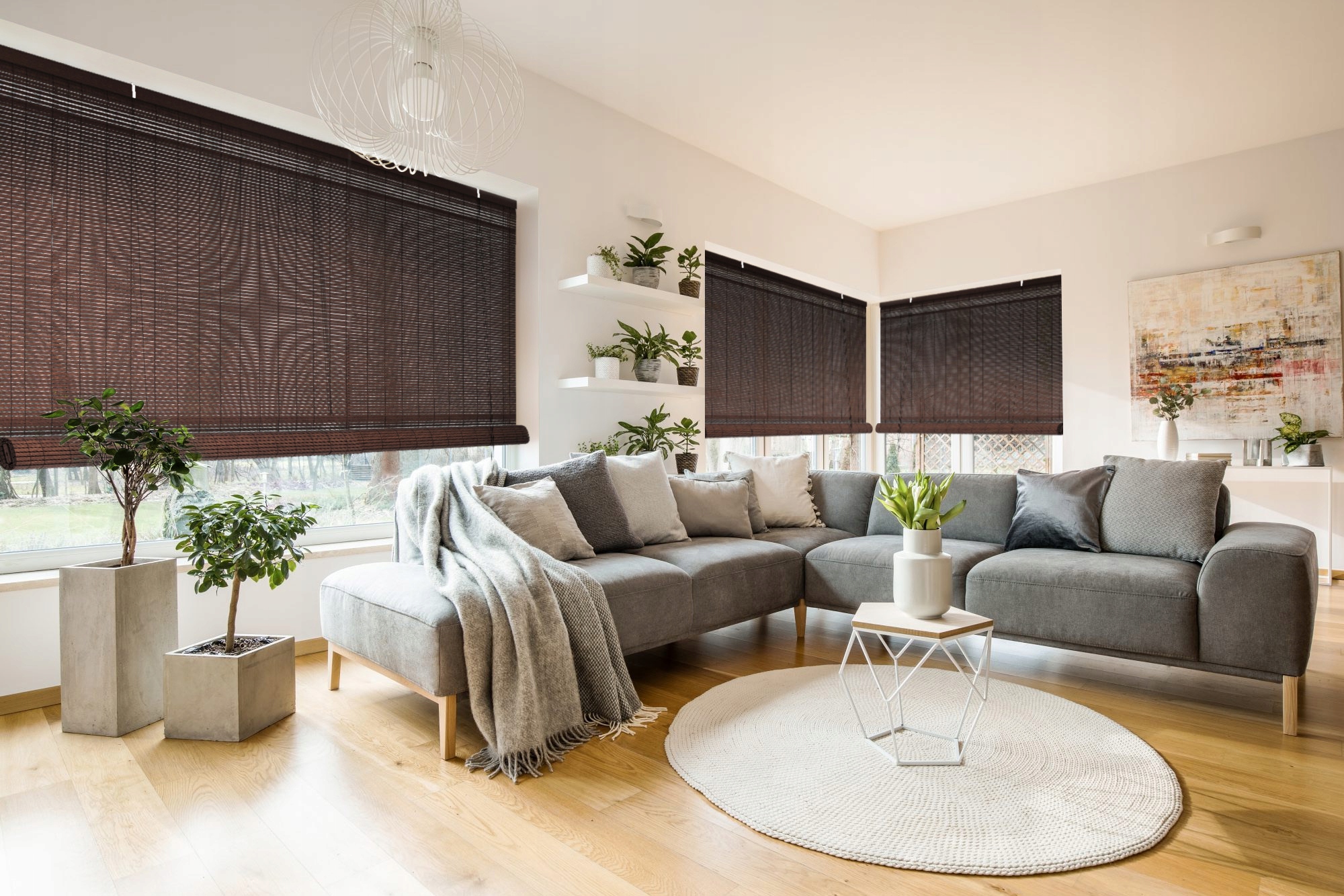 - Бамбуковые жалюзи из натуральных материалов.