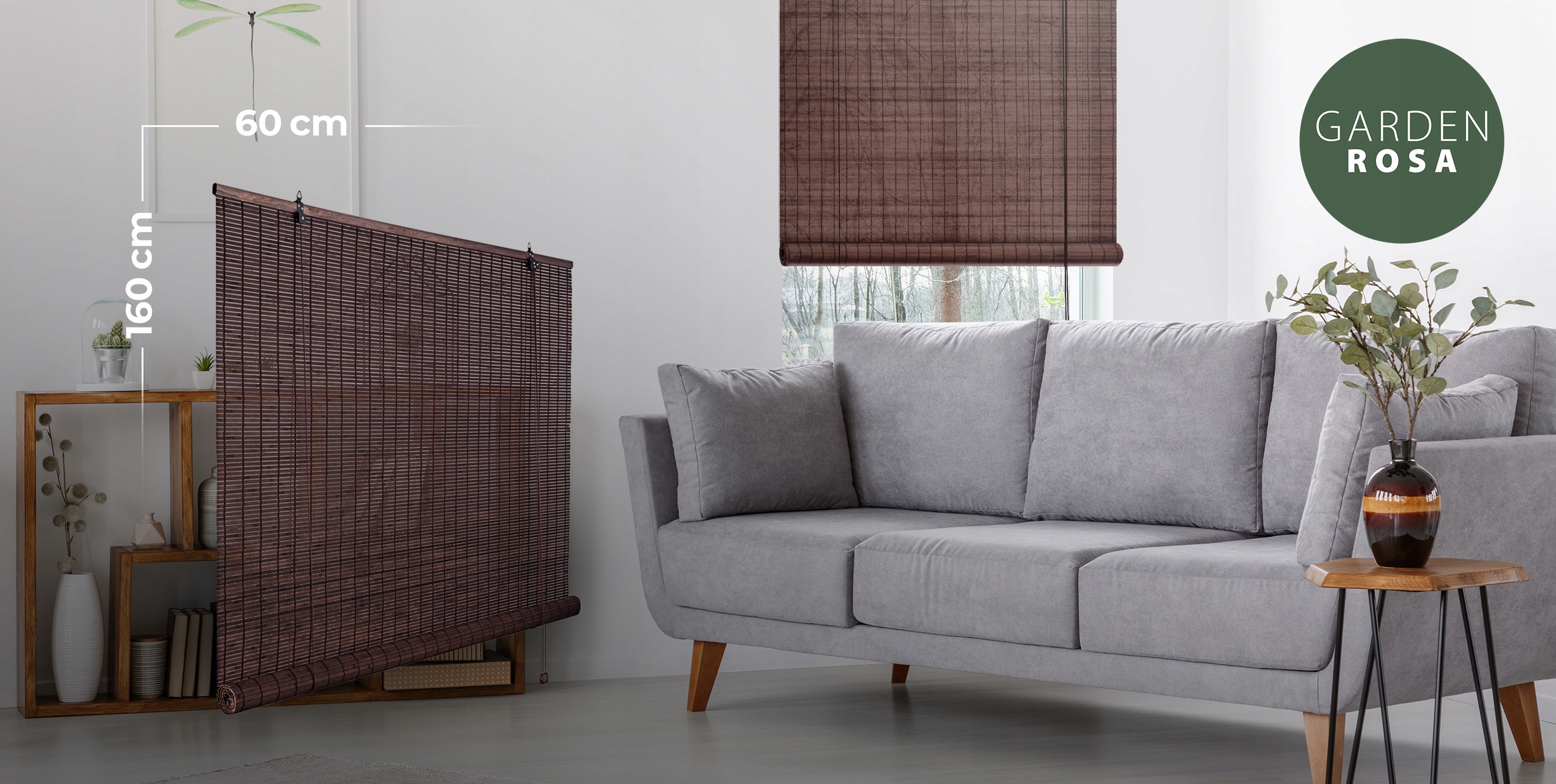 - Бамбуковые рулонные шторы из натуральных материалов (цвет: темно-коричневый)