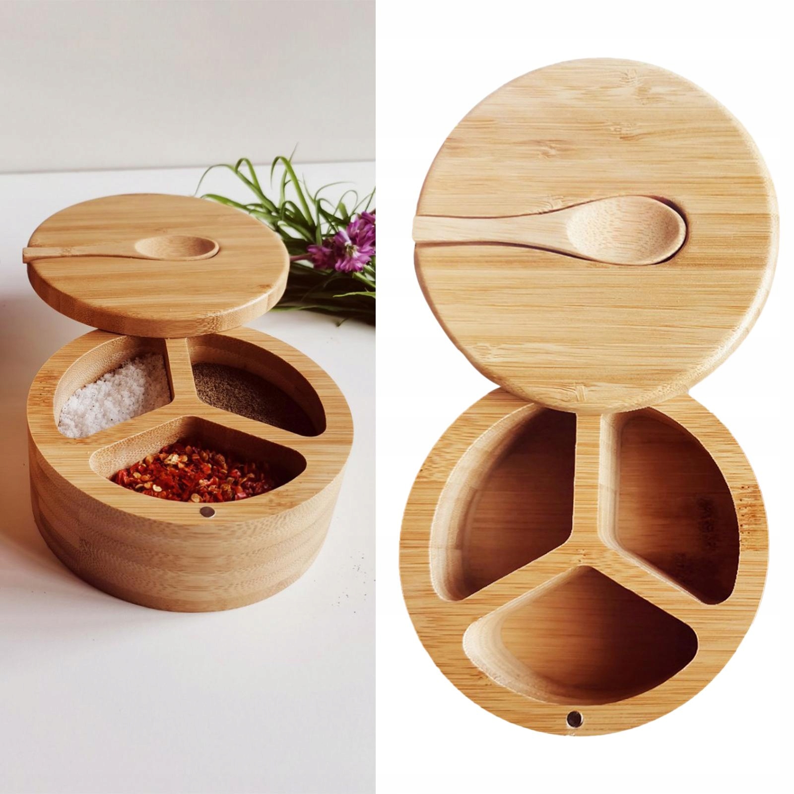 [Продуманный дизайн]Круглая бамбуковая коробочка для специй с крышкой, не занимает лишнего места, удобна в использовании.