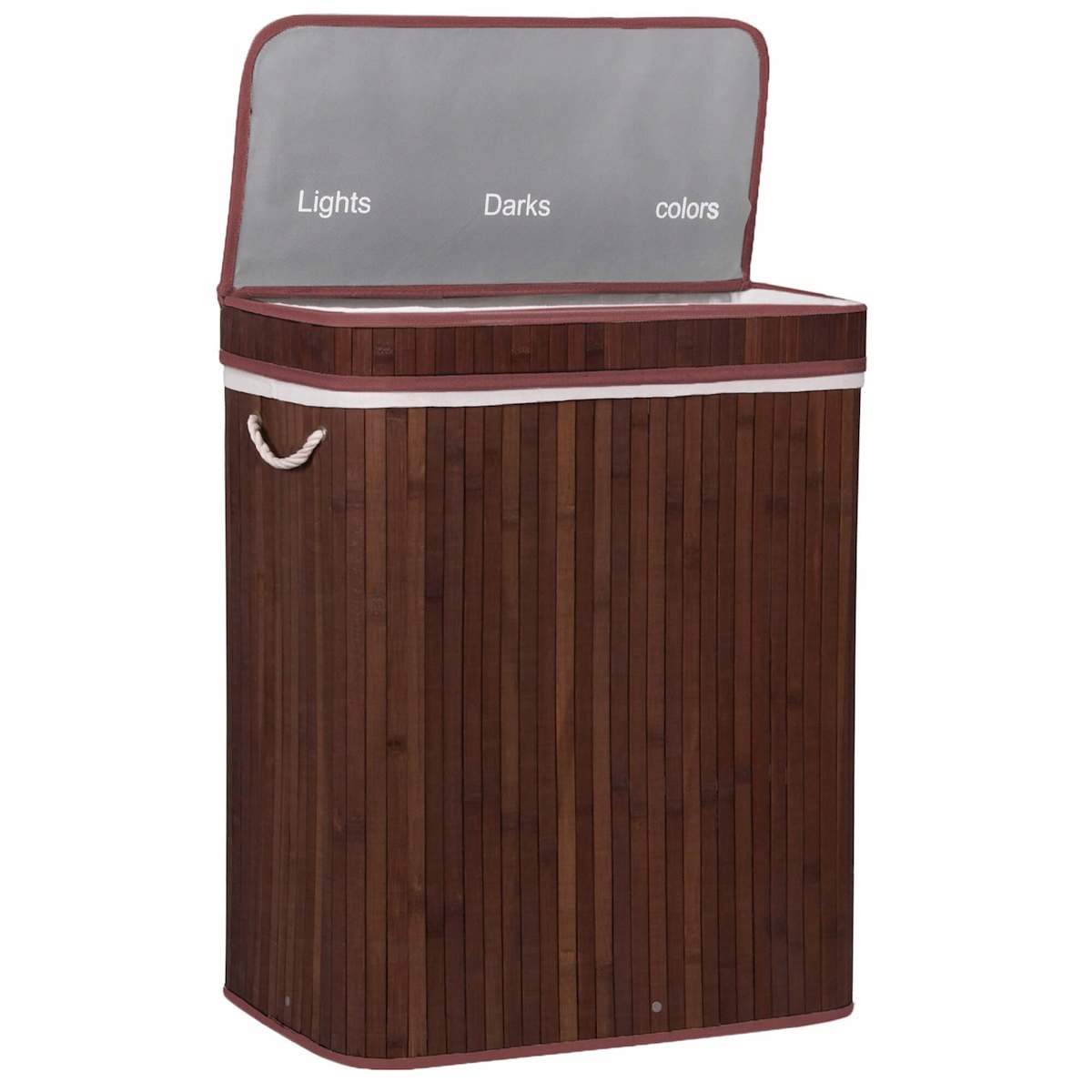 Корзина изготовлена из высококачественного натурального бамбука, который экологичен и, прежде всего, свет . Его емкость составляет до 100 л, поэтому в нем можно разместить большое количество вещей. Три секции идеально подойдут для разделения одежды для стирки.