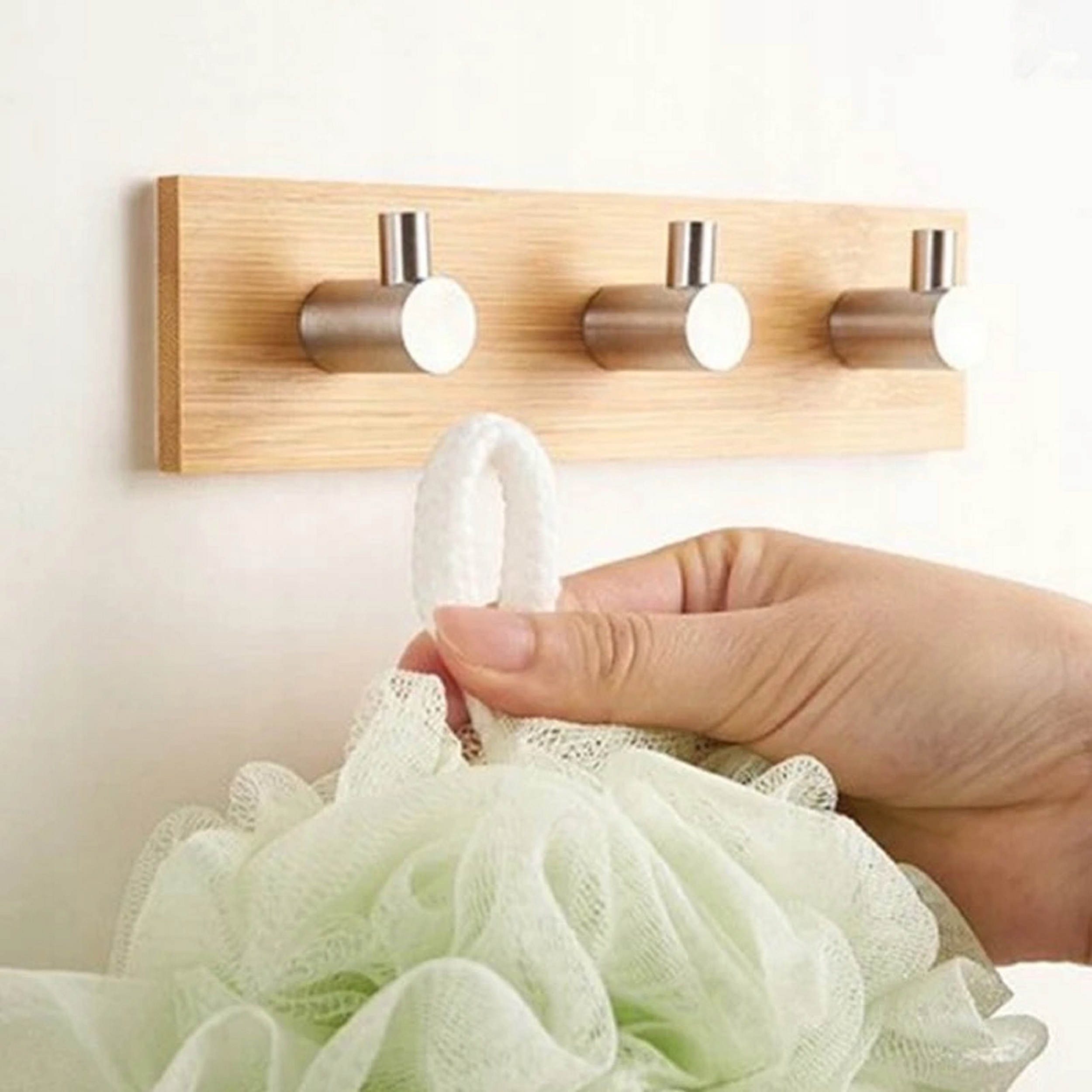 Бамбуковая вешалка для полотенец – экологичное и стильное решение для вашей ванной комнаты. Имеет три крючка из нержавеющей стали, на которые можно повесить несколько полотенец или халатов. Крючки устойчивы к коррозии и обеспечивают долговечность вешалки.