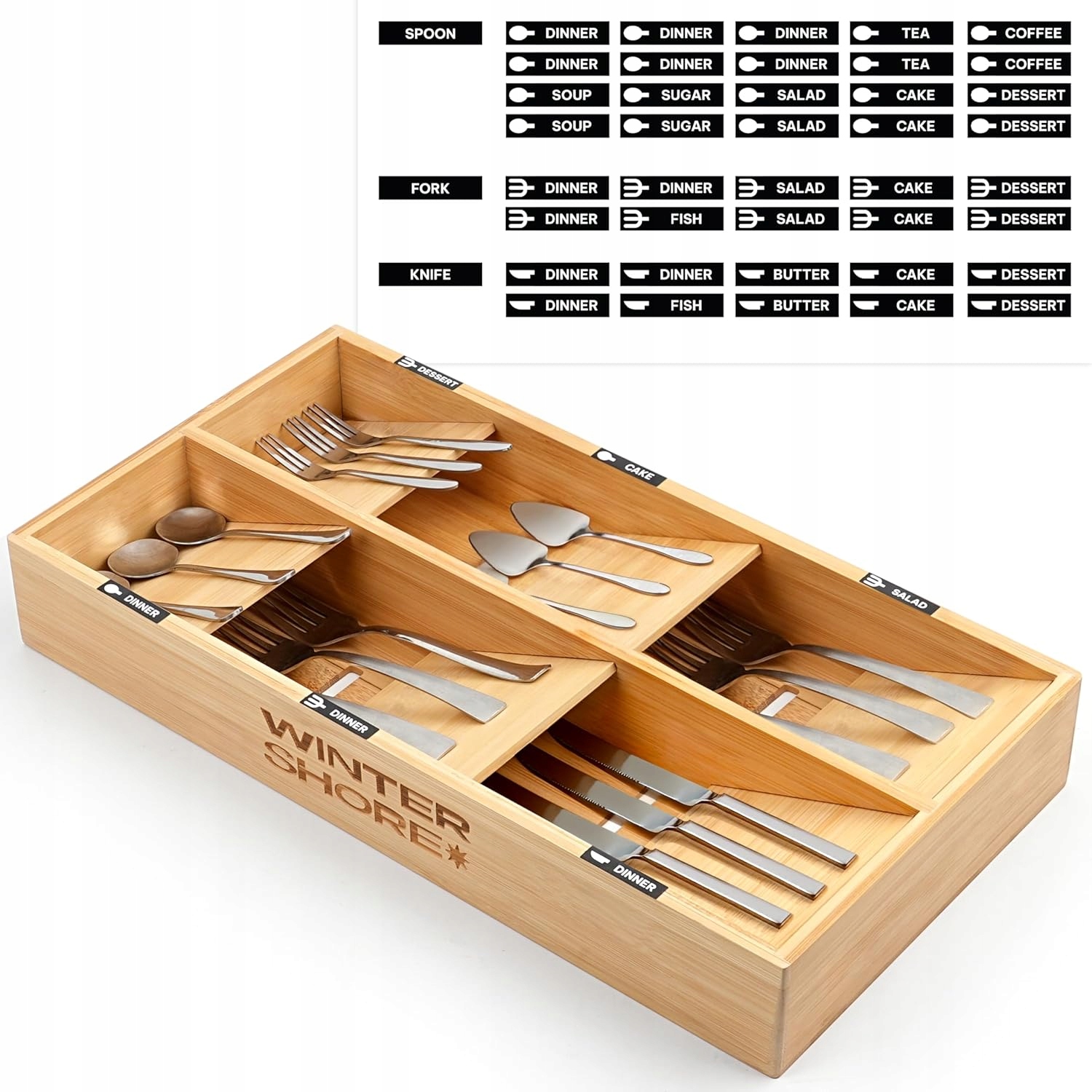 БАМБУКОВЫЙ ОРГАНАЙЗЕР 40 СМ, 6 ОТДЕЛЕНИЙ, ЭТИКЕТКИ ДЛЯ СТОЛОВЫХ ПРИБОРОВ