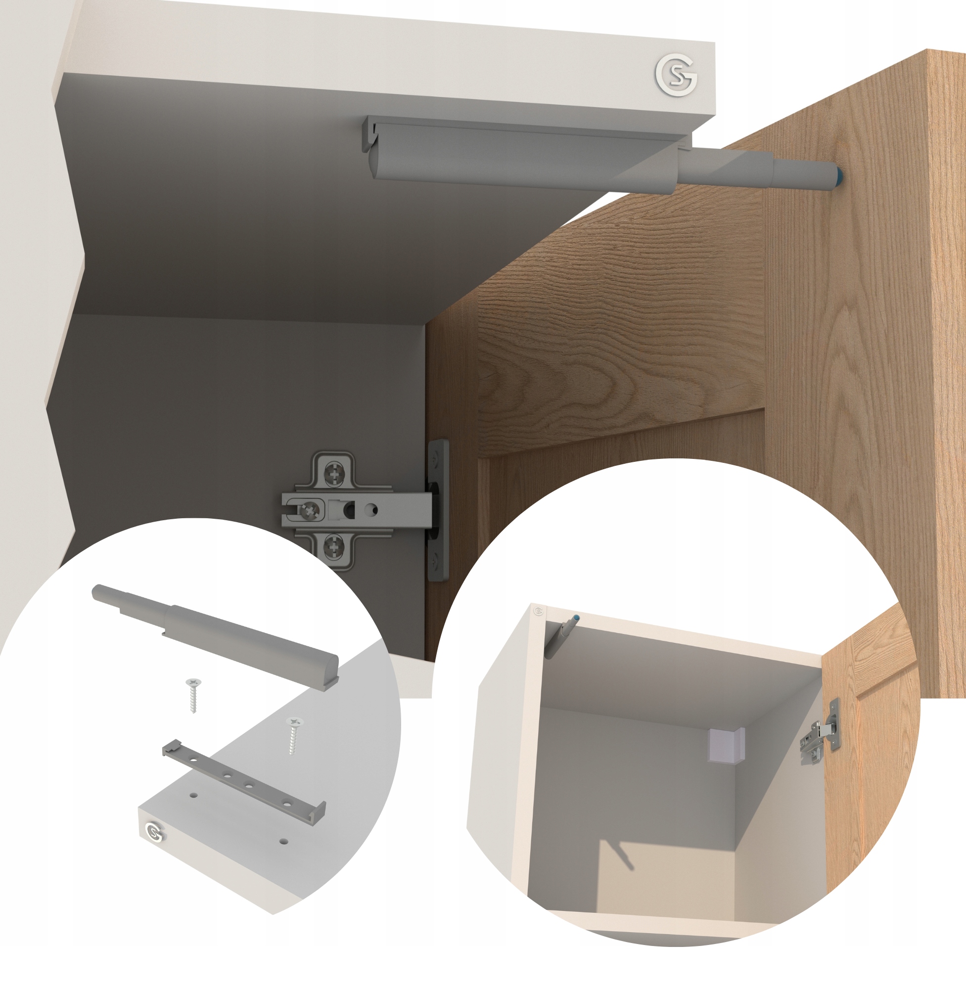 Толкание для открытия предназначено для открытия шкафов Delete. h2> - Есть установленные винты. Решение, популярное в современной мебели, где мы не хотим размещать ручки на фронты.