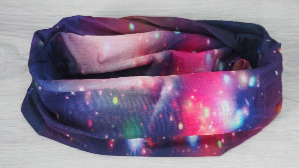 - можно носить разными способами - как шарф, маску, шляпу или повязку на голову