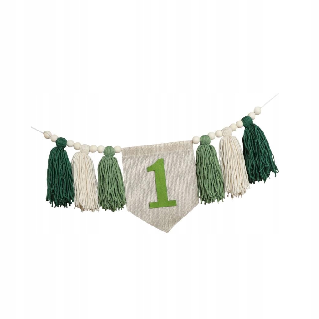 Баннер на детский стульчик на первый день рождения, гирлянда с кисточками из бисера, зеленый цвет первого дня рождения