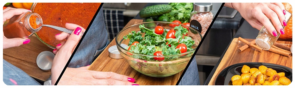 - Трудно представить вкусные блюда без соответствующих специй. Специи часто могут прекрасно дополнить блюдо, придав ему неповторимый вкус. Хотя в приготовлении часто используются только соль и перец, в зависимости от блюда можно использовать и множество других специй. Чтобы вы могли правильно организовать свои специи и иметь их под рукой, когда они вам понадобятся, мы представляем практичный набор.
