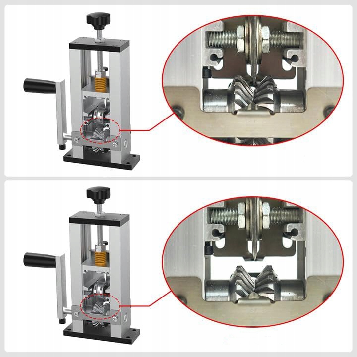 Легко в использовании - отрегулируйте высоту лезвия в соответствии с вашими потребностями, используя ручку регулировки. Переложите кабель через соответствующее отверстие и поверните рукоятки, чтобы удалить изоляцию без усилий.