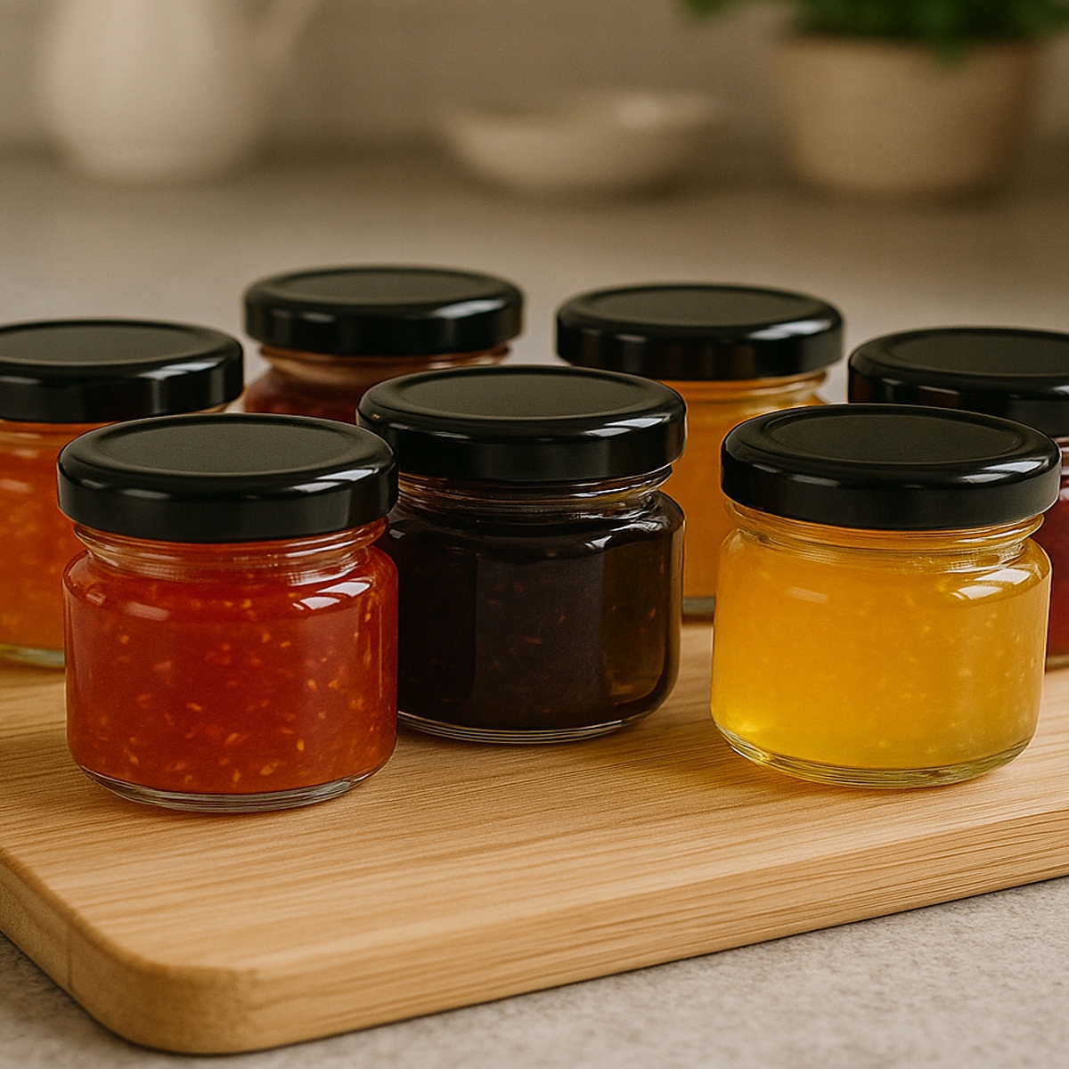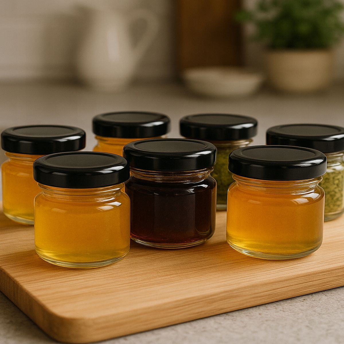 Стеклянные банки 40 мл также очень хорошо выбраны для меда или других деликатесов, в качестве свадебного подарка для гостей.