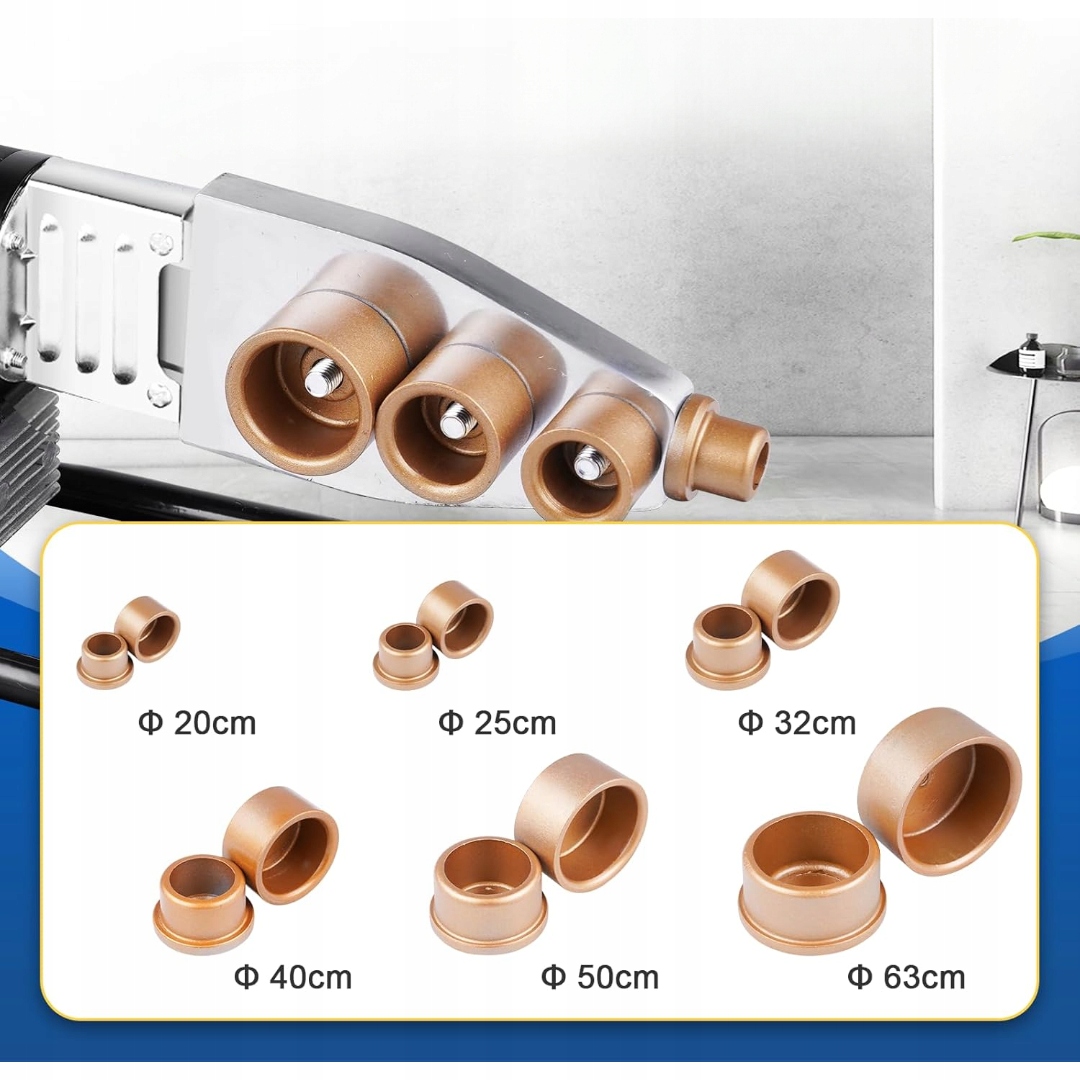 [Головка с антипригарным покрытием] 6 комплектов головок с антипригарным покрытием с равномерной и стабильной теплопроводностью могут использоваться для плавления труб PP/PPR/PE и других пластиков для достижения бесшовной сварки.