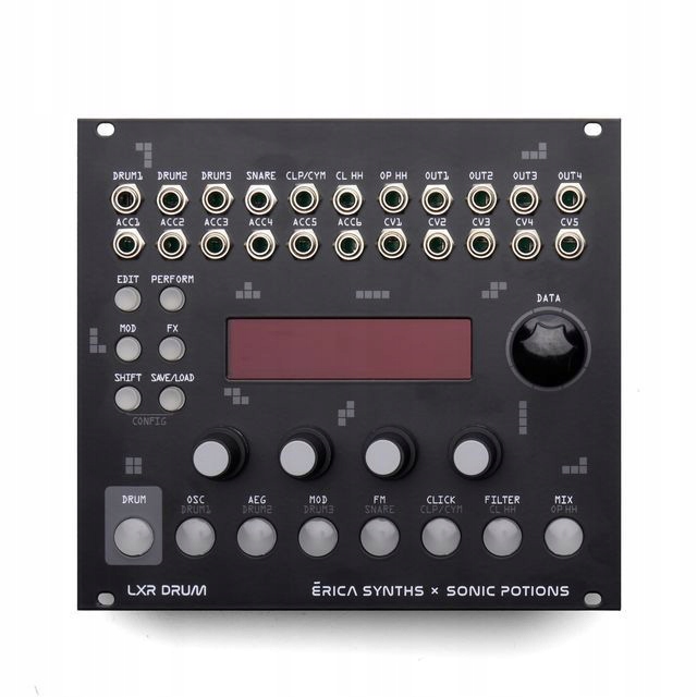 Модуль LXR Drum от Erica Synths представляет собой еврорэковую версию синтезатора LXR-02 Drum той же компании с несколькими входами управляющего напряжения. Как и стационарный модуль, шестидорожечный модуль Eurorack был создан в тесном сотрудничестве с компанией Sonic Potions. Каждый из шести треков можно детально настроить с помощью более 30 параметров, охватывающих широкий спектр (эмулируемых) аналоговых барабанов, бесчисленное количество звуков с жестким индустриальным оттенком и тех звуков, которые лучше всего можно описать как '' «богатый артефактами» звучит как хаос». Три песни также идеально подходят для создания басовых партий! Синтез состоит из элементов VA (виртуальный аналог) и FM и может модулироваться сложными способами. Огибающие, LFO, Velocity и пять входов CV можно свободно назначать на любое место назначения, что позволяет получать особенно разнообразные и динамичные звуки. Кроме того, каждый трек имеет резонансный многорежимный фильтр и эффекты разрыва, такие как Bitcrusher или Wavefolder. Выше находится мастер-процессор эффектов, который может обрабатывать, среди прочего, Flanger и Delay. Четыре аудиовыхода можно определить как стереопары или свободно назначать отдельные выходы.