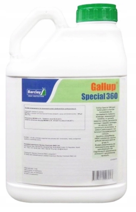 GALLUP SPECIAL 360 — внекорневой гербицид в форме концентрата для приготовления водного раствора, применяемый по листьям, предназначенный для борьбы с однодольными и двудольными сорняками (однолетними и многолетними) при выращивании под зиму. пшеница, озимый ячмень и озимый рапс, послеуборочные культурные растения (стерня), в яблоневых садах и на неиспользуемых в сельском хозяйстве территориях.