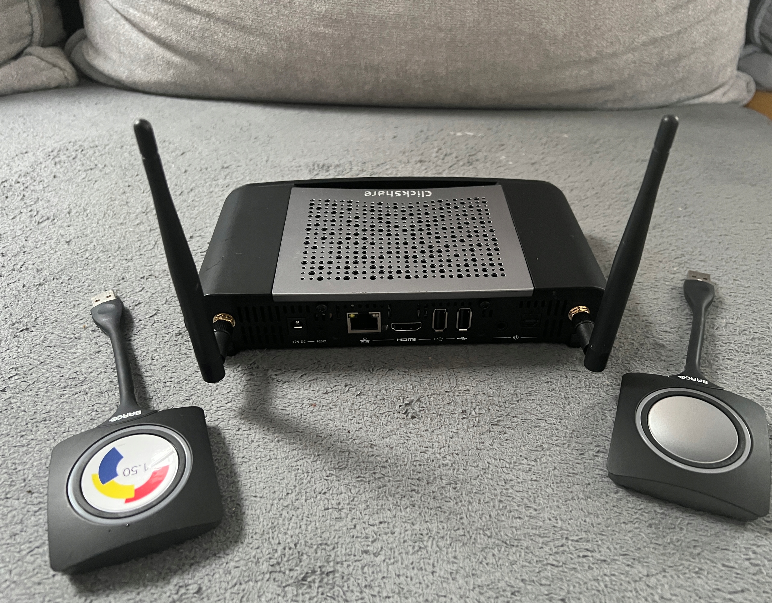 - Регулируемый диапазон с модуляцией сигнала; максимум до 30 м - между кнопкой ClickShare и основным устройством ClickShare