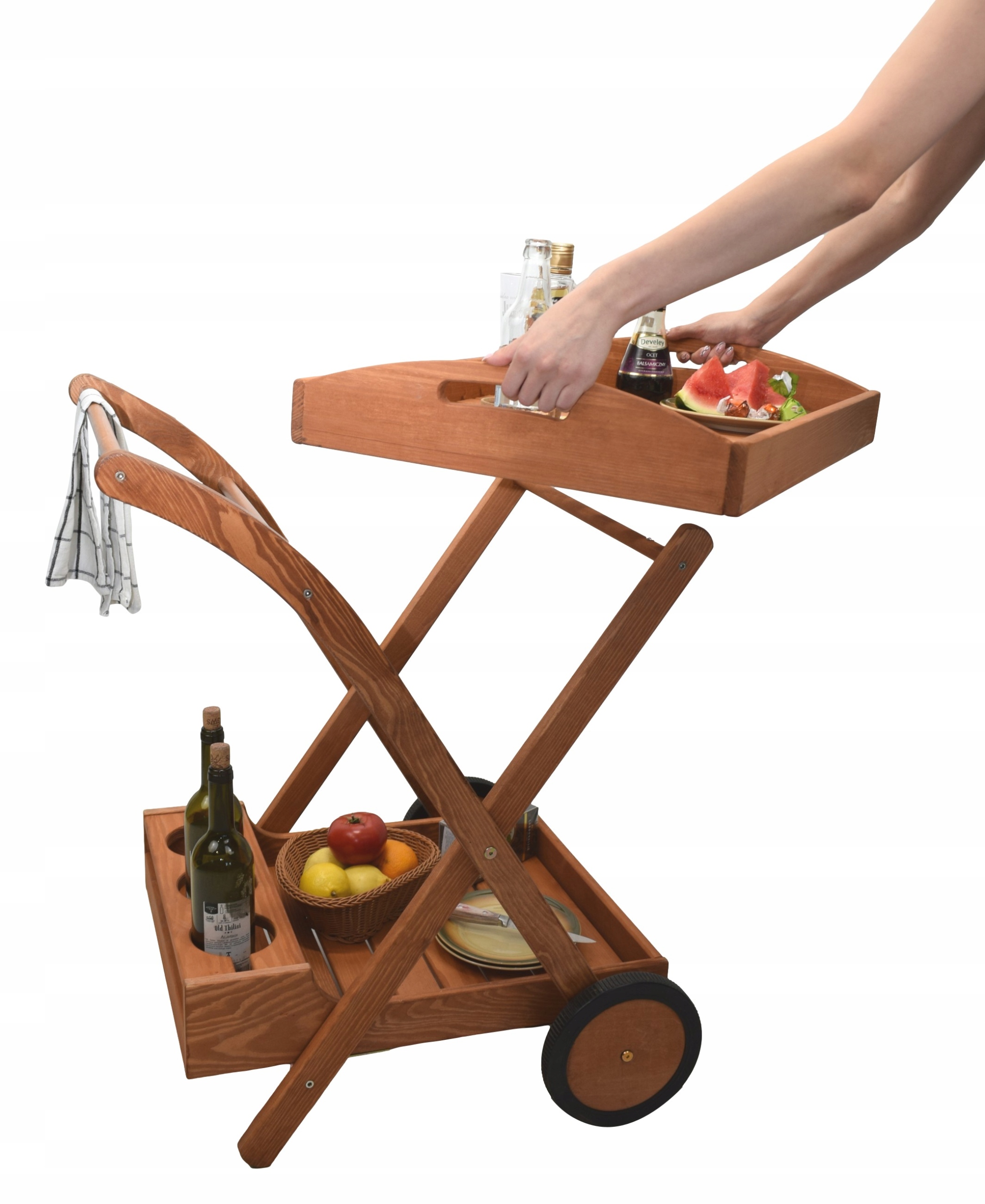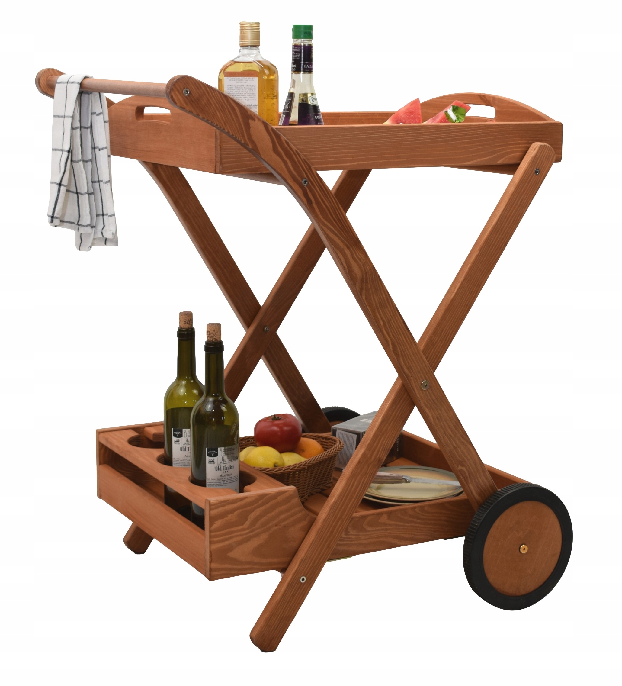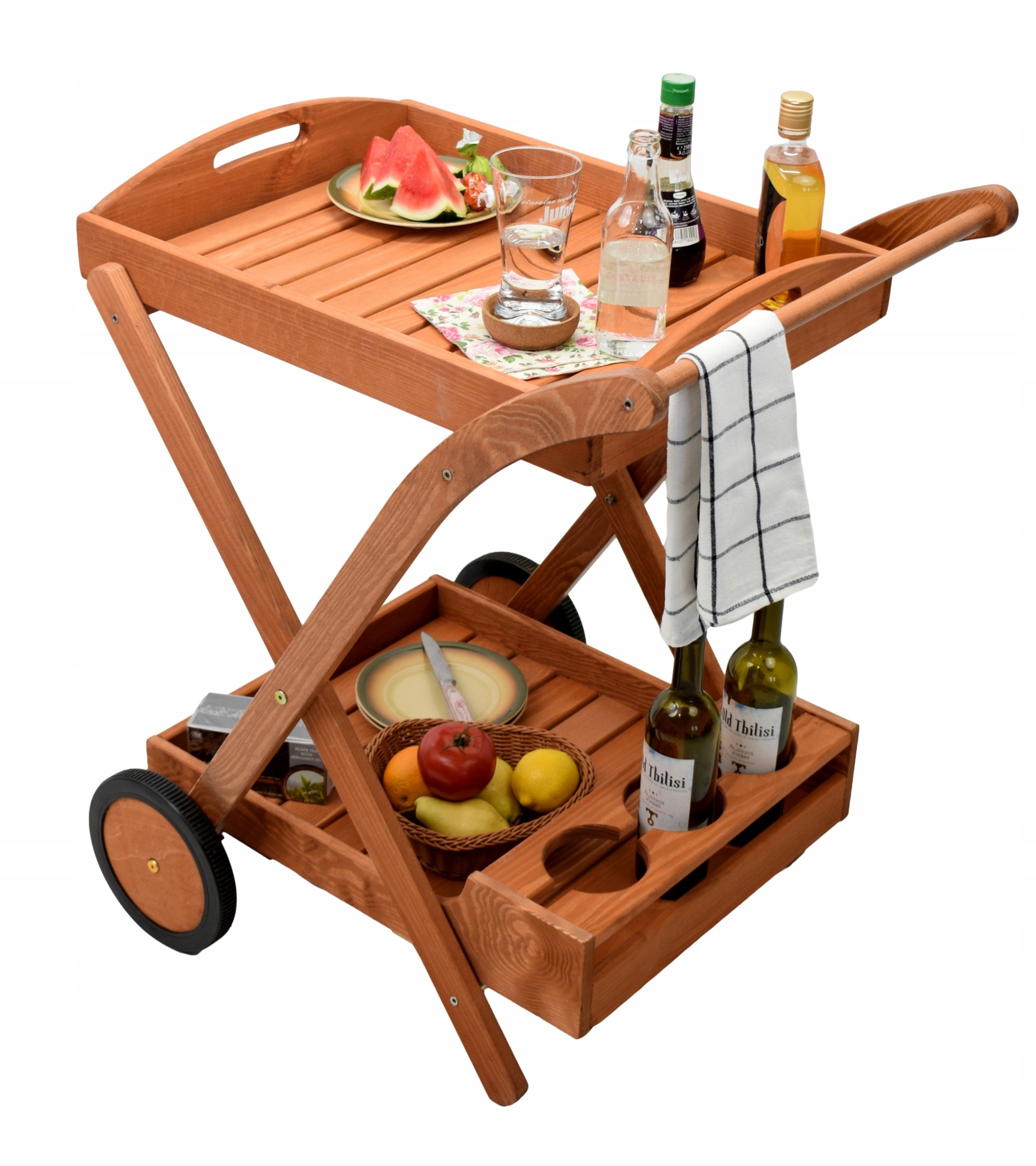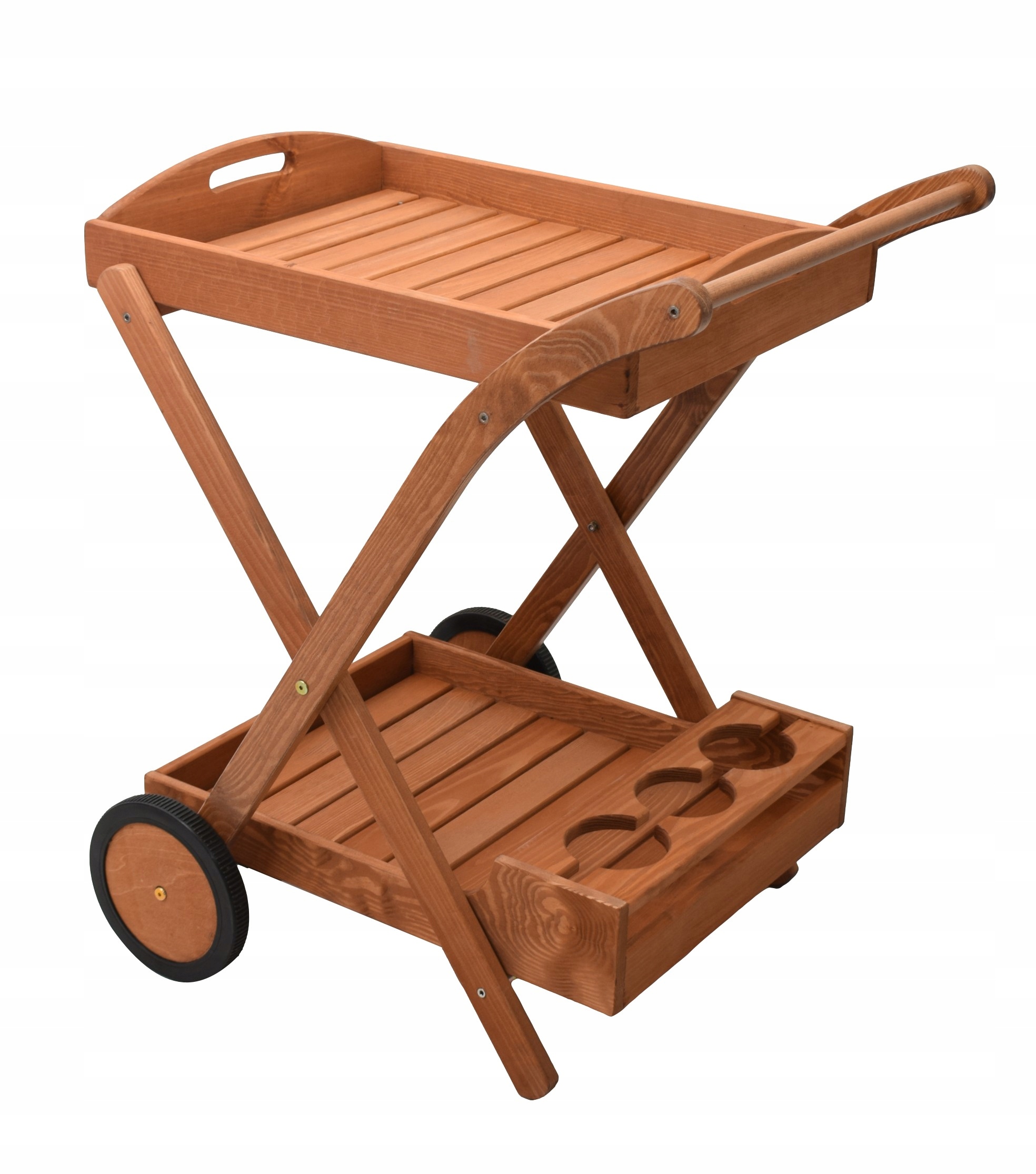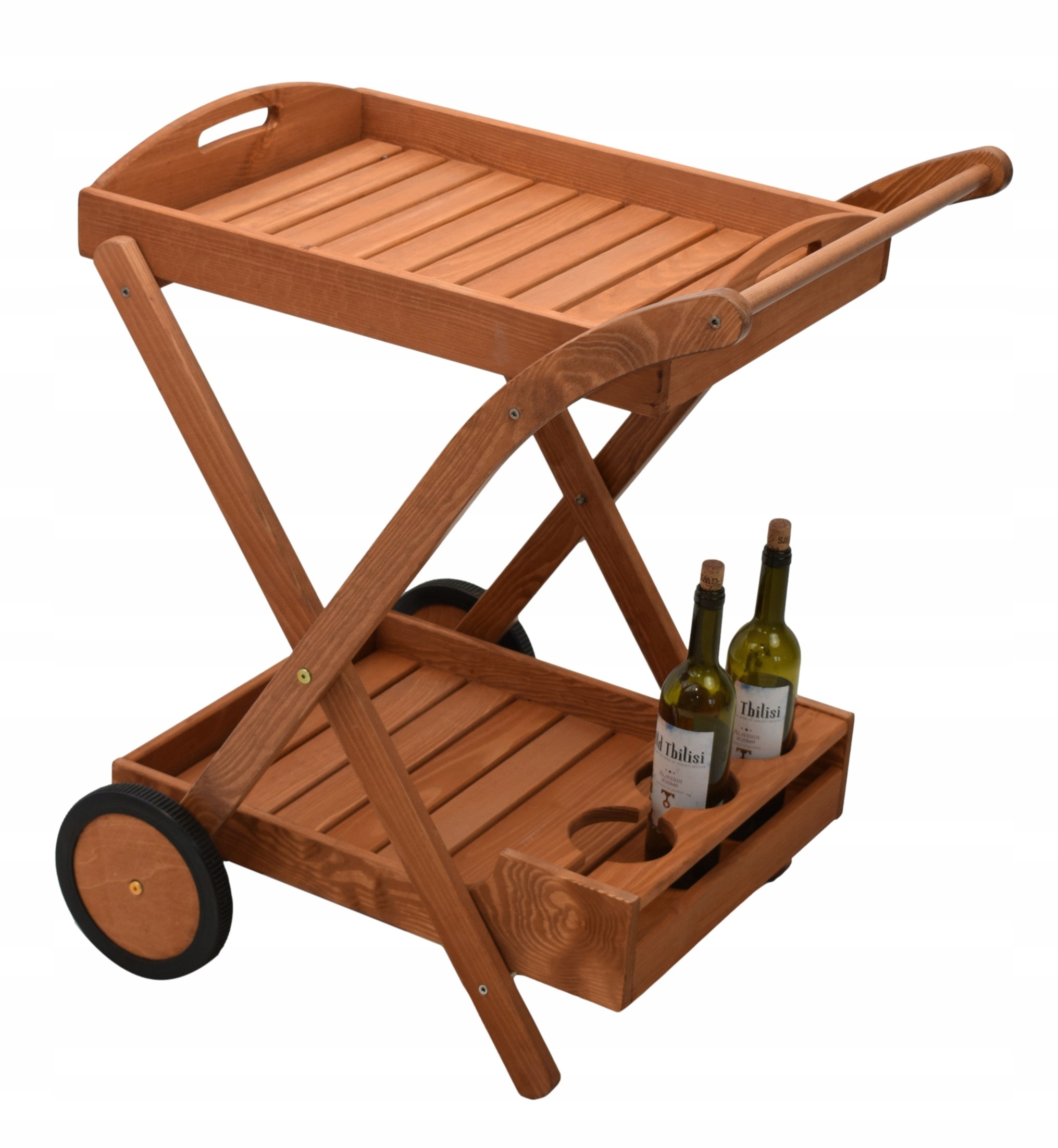 ДЕРЕВЯННАЯ САДОВАЯ МОБИЛЬНАЯ БАРНАЯ ТЕЛЕЖКА С ПОДНОСОМ, ПОЛКА, ВИННАЯ СТОЙКА