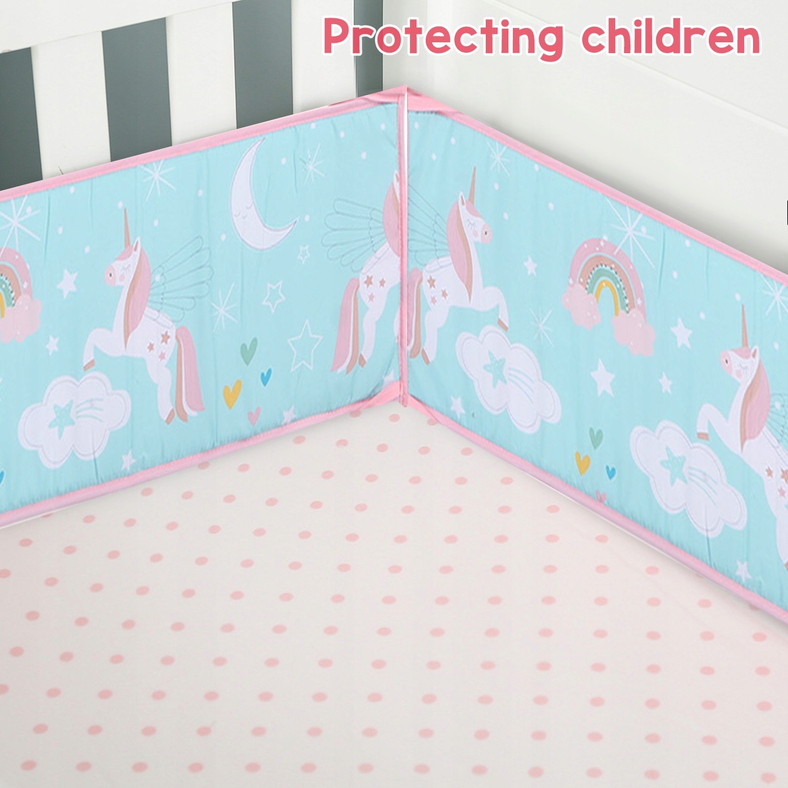 2. Защита детей: подушка для предотвращения столкновений окружает ребенка и может безопасно предотвратить столкновение с твердыми перилами или деревянным каркасом детской кровати. Это также поможет предотвратить удары детей головой об забор или защемление рук и ног в заборе.