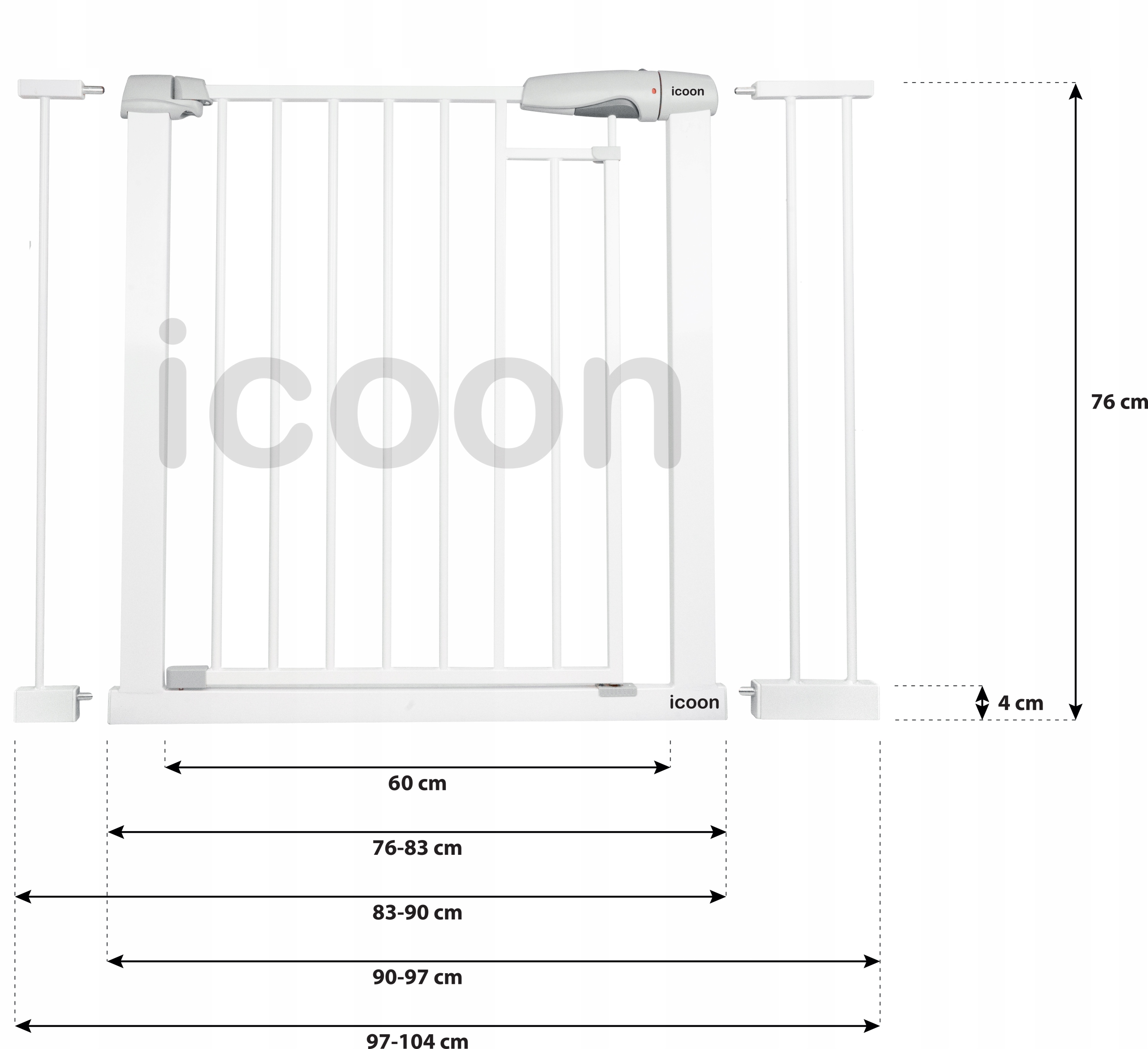 Благодаря возможности расширения и системе крепления ворота можно адаптировать к проходам от 75 см до 105 см.