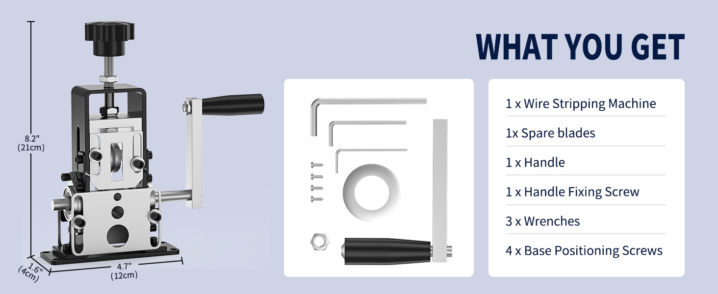 ✅ Простота эксплуатации и возможность автоматизации: Оснащен рукояткой, позволяющей снимать изоляцию вручную, а также легко➛подключать отвертку для автоматического работа.