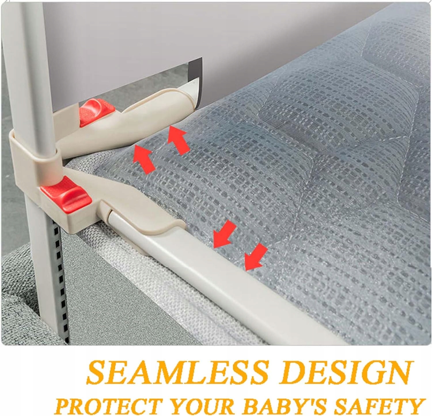 сгибаются нижние рельсы, идеально подходит для матраса, сильно нажимает на матрас, между поручкой и матрасом, предотвращение застрявшего ребенка.