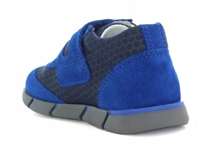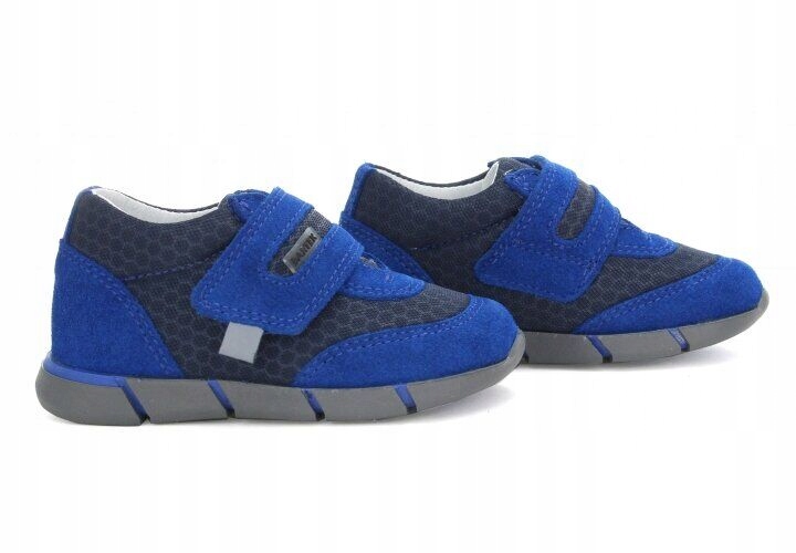 Бартек предлагает новую модель детской обуви для активных детей. Туфли удобные, застегиваются на одну липучку, верхняя часть туфель выполнена из натуральной кожи нубука и текстиля высочайшего качества. Кроссовки защищают стопу и стабилизируют ее благодаря жесткому верху, а также используется легкая, нескользящая подошва соответствующей формы для лучшей стабилизации стопы ребенка.