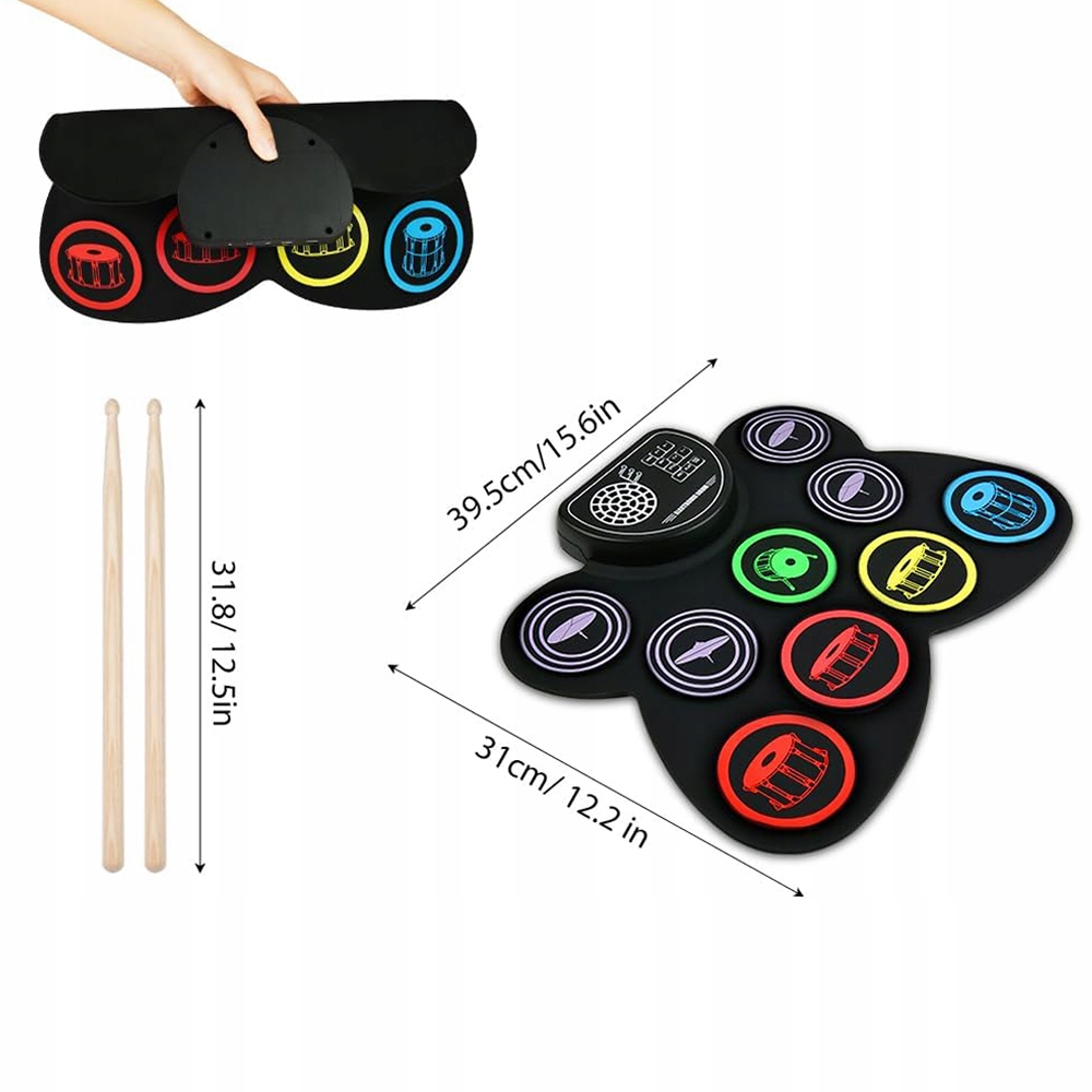 🎵 Включен в набор из 9 силиконовых барабанных площадок, включая тома 3, , 2 аварийных пластин , 1 пластина Hi-Hat, 1 пластина езда , 1 Serbeller и 1 бас-басс. Бэти