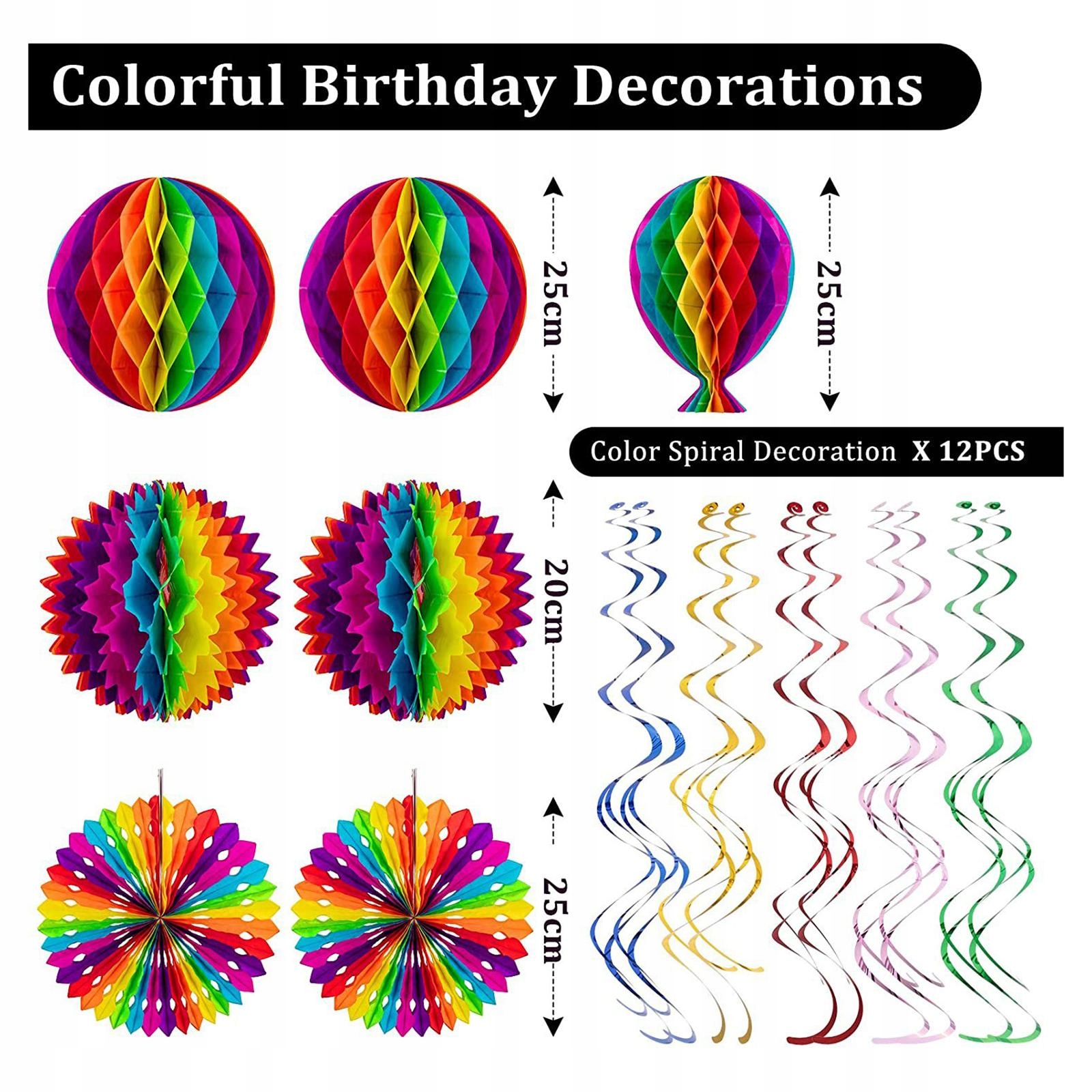 Набор украшений для дня рождения: включает в себя: 1 повязка на голову «С ДНЕМ РОЖДЕНИЯ», 1 бумажный шарик или треугольный вымпел длиной 10 метров, 2 бумажных шара, 1 сотовый воздушный шарик, 2 бумажных веера, 2 бумажных шарика с цветочным рисунком, 12 шт. x свисающие завитки, 1 нить в горошек длиной 0,8 фута.