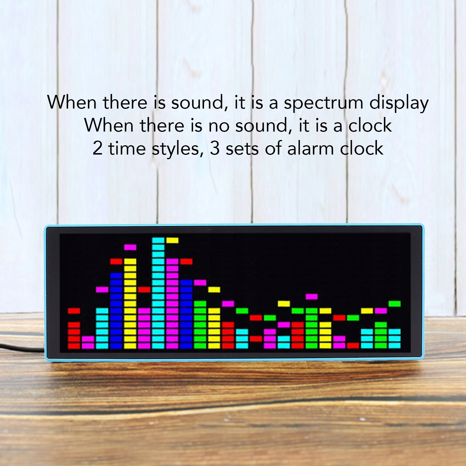 2. ФУНКЦИЯ ЧАСОВ: Электронные часы со светодиодной подсветкой музыкального спектра — это настольное искусство, которое представляет собой спектр, когда есть звук, и часы, когда звук отсутствует. 4 стиля времени, 3 группы часов