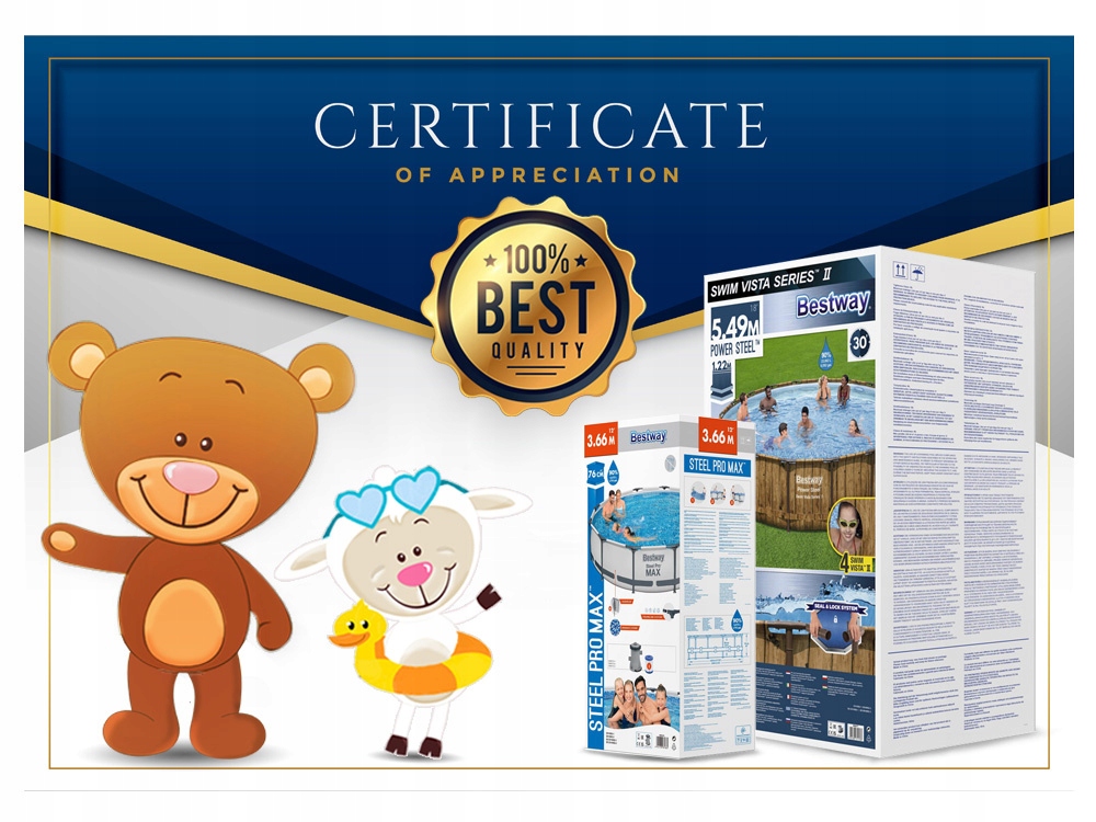 Лестница соответствует последним нормам безопасности: СТАНДАРТ ЕС EN16713, требующим использования в бассейнах глубиной более 85 см, так называемых безопасная лестница, позволяющая легко и быстро снимать ступени, когда бассейн не используется. Благодаря этому дети не смогут войти в бассейн без присмотра взрослых.
